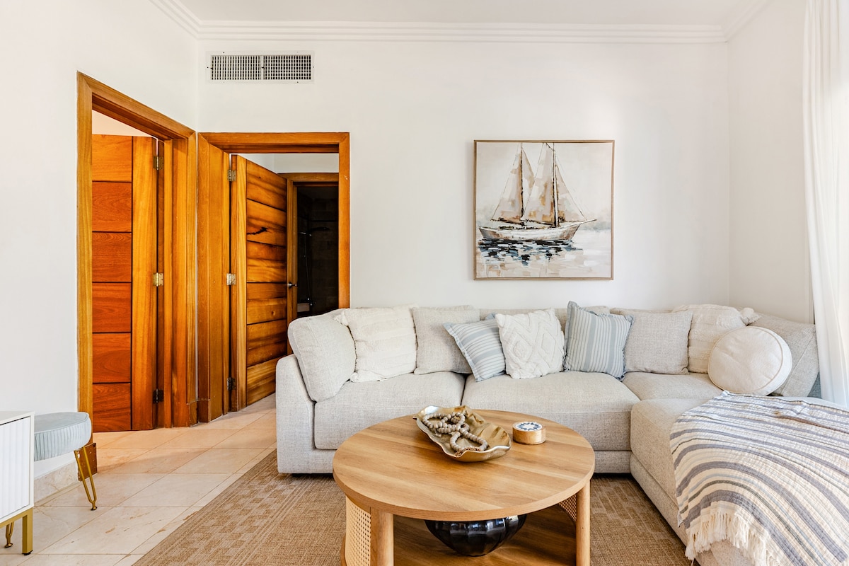Pensado para toda la familia, y ubicado frente a playa, con el sonido Del Mar en todo momento, bien equipado con muebles de alta calidad, diseñado por la prestigiosa casa de diseño las Kasas Portugal, aquí vivirás junto a tu familia y amigos, una experiencia única frente al Mar Caribe. La terraza de esta unidad esta ubicada estratégicamente frente al mar, siendo este uno de los atractivos principales que hacen especial este espacio.
