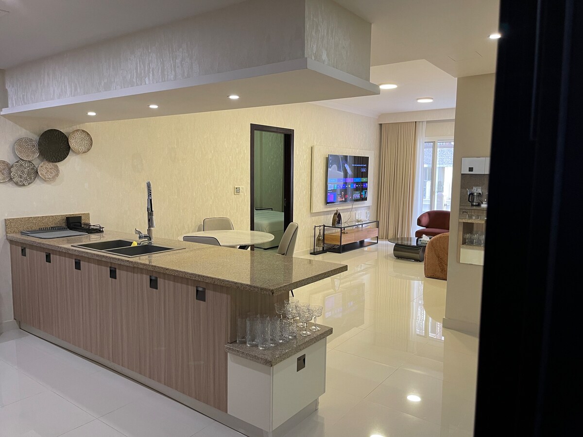 This modern one-bedroom apartment in the heart of Muscat with premium location offers a blend of comfort and convenience. Ideal for families and couples. The building includes on-site premium restaurants, a pharmacy, and coffee shops and everything you need for a comfortable stay. Just 3 minutes from Al Mouj Marina, 7 minutes from the airport, and close to malls, beaches, and attractions, it’s perfect for business or leisure stays.