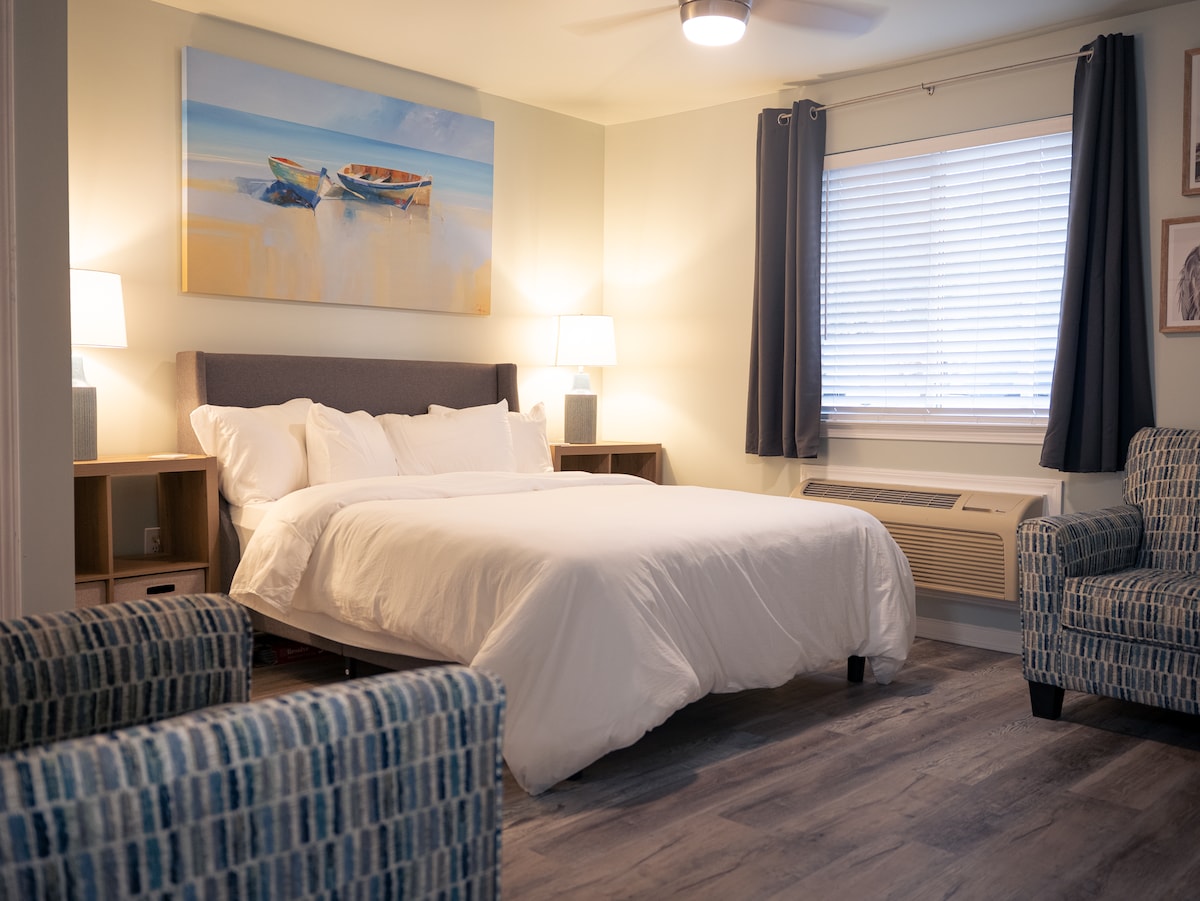 The Wright Beach House is your comfy home by the beach. The three + bedroom home has a generous front porch, screened side and back porch, as well as a yard and driveway and is only one block away from the beach. Inside you will find a comfortable, spacious home with a master queen bed that accommodates a work area and an additional daybed nook, making this house perfect for up to seven guests. Old Town with all of its charming restaurants and boutiques is walking distance from the house.