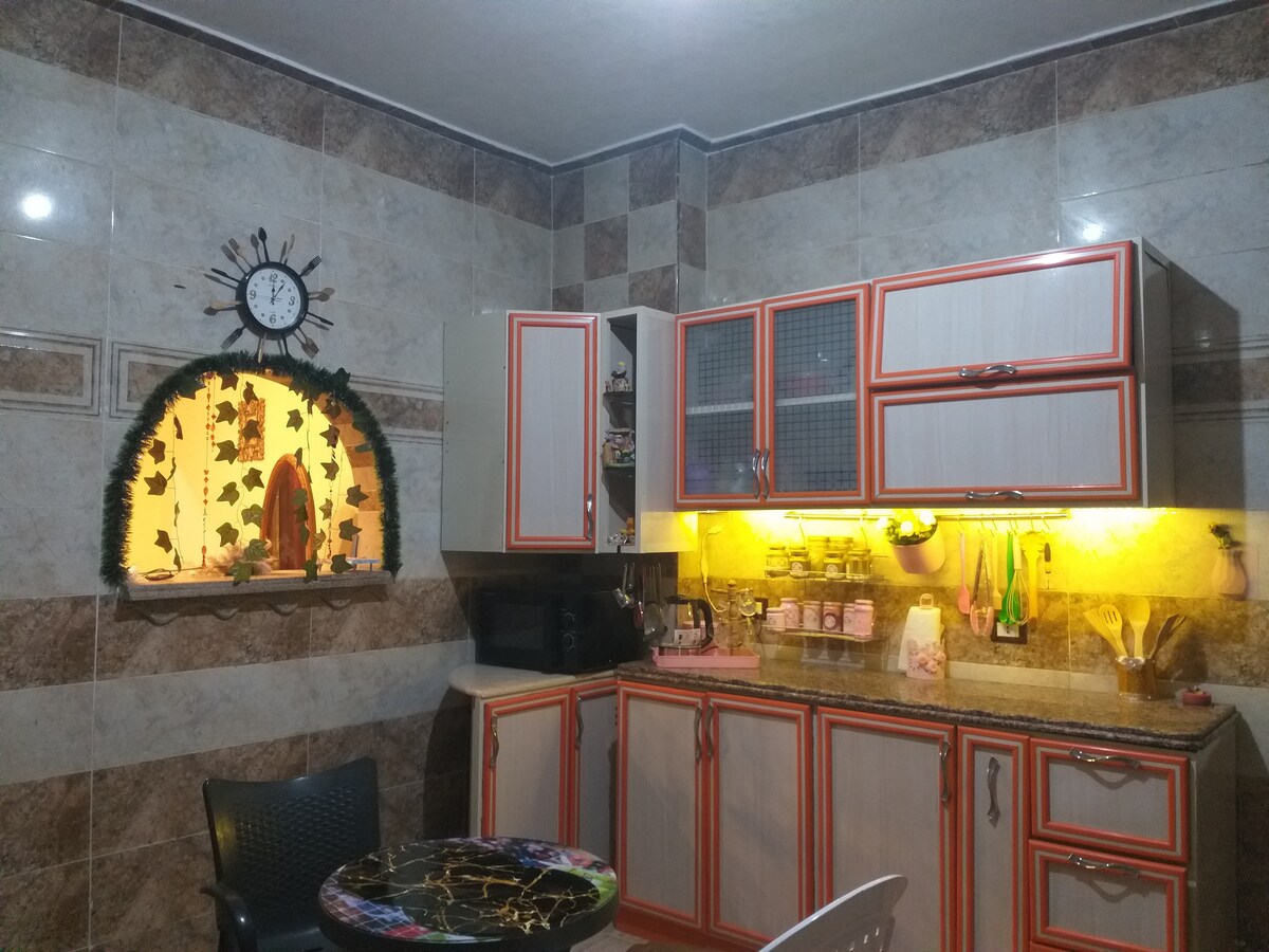 Quiet, comfortable, beside shops and markets, and in the middle of townand with all appliances that will make your stay convenient, especially it almost noise-free. The weather is mesmerizing and the apartment has a large balcony that provides a good look to all passerbys and you will enjoy the breeze in the morning marvelously. You can also enjoy sitting together in living room which has an entrance to the balcony.