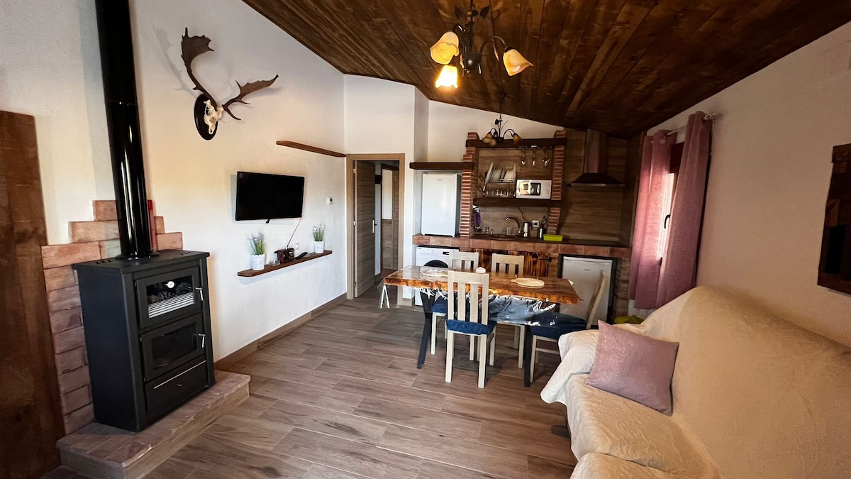 La Cabaña: Cozy house in the middle of nature, ideal for disconnecting and reconnecting. It is one of the boutique apartments of La Casería de la Torre, it has a small renovated pool to share, perfect for cooling off on sunny days. The house overlooks the forest, has access to trails and a nearby river. Its warm and simple decor creates a magical and serene atmosphere. Enjoy a peaceful retreat where time stands still.