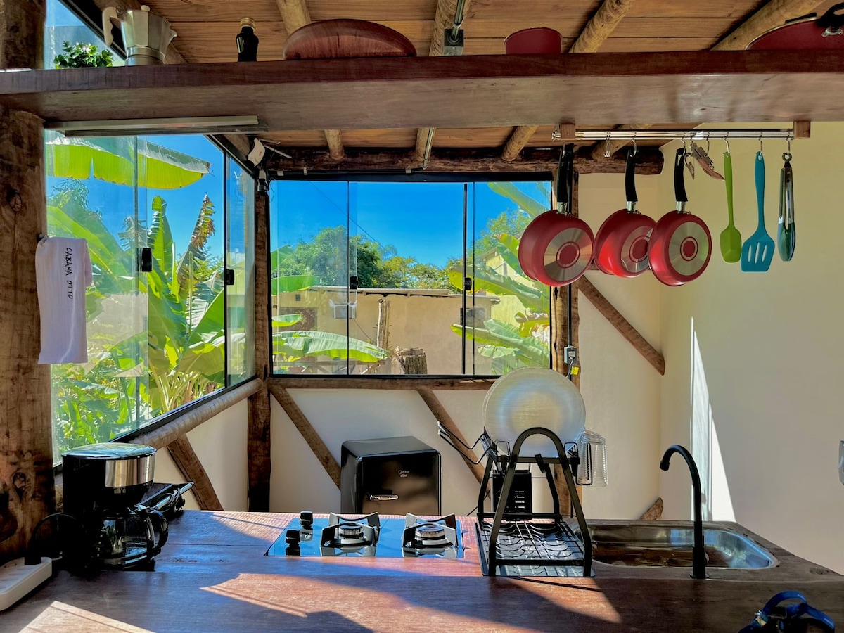 Cabana Otto, we are located in Vila do Abraao/ Ilha Grande RJ. A comfortable cabin in the middle of the forest, we are about a 12-minute walk from the center of the village, this accommodation is for those who want to enjoy the nature of Ilha Grande, quiet and birdsong. The cabin is equipped with hot and cold air conditioning, a queen size bed, coffee maker, sandwich maker, minibar, hair dryer, kitchen utensils and we provide bed and bath linens. The cabin is at the top of the village.