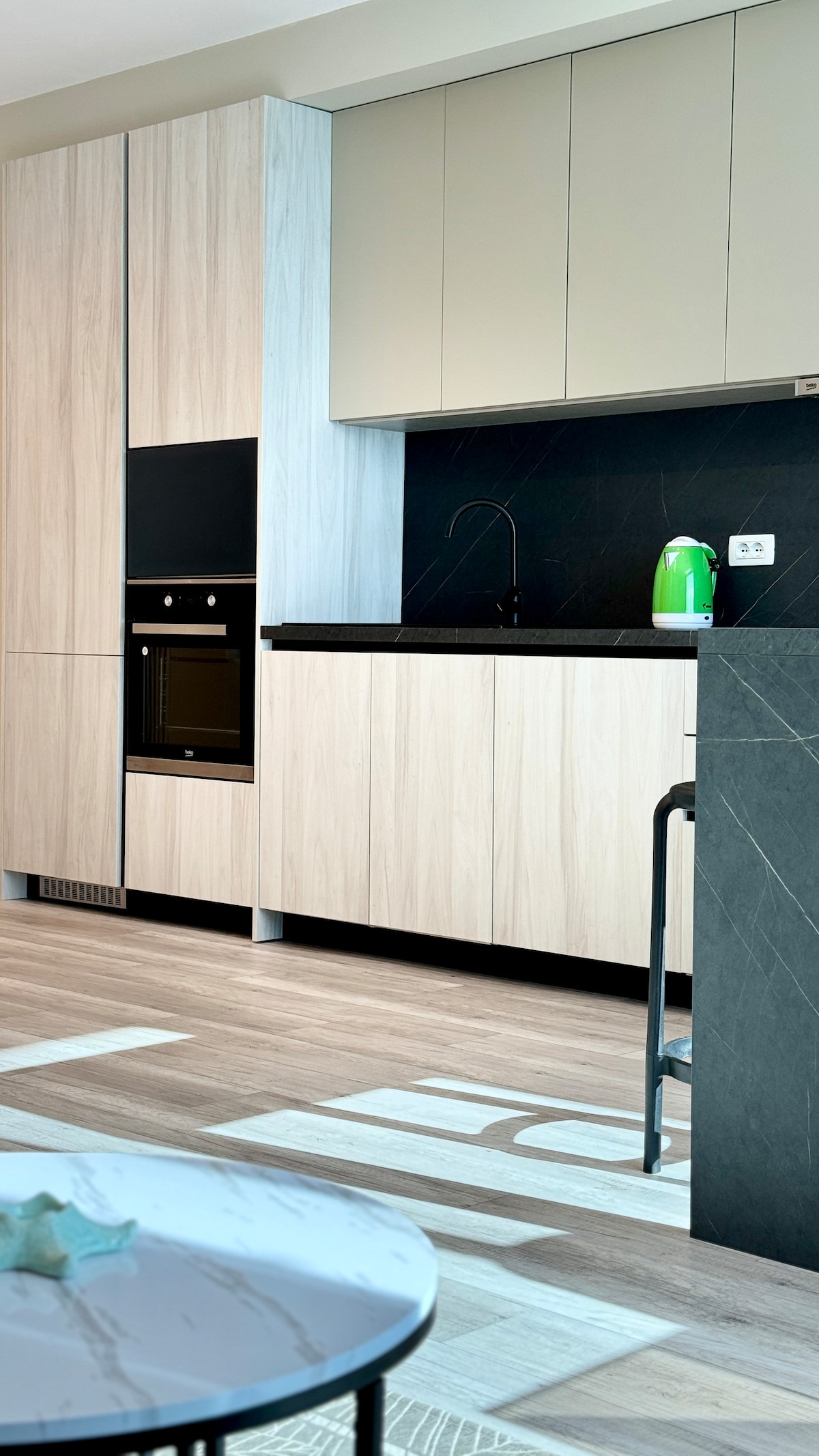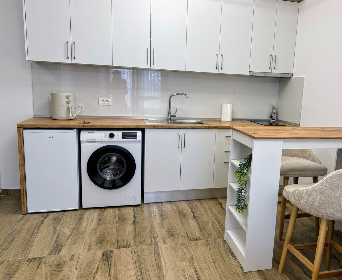 Welcome to our brand-new apartment designed for a perfect seaside getaway. Located on the 5th floor of a newly constructed building , this apartment offers modern amenities and a peaceful stay just steps from the beach. It has two double beds, a fully equipped kitchen, a bathroom, and a balcony. The apartment has AC, a washing machine, Wi-Fi, and a smart TV. You'll have easy access to beach bars, restaurants and shops. Book your stay and experience the best of the seaside in style.