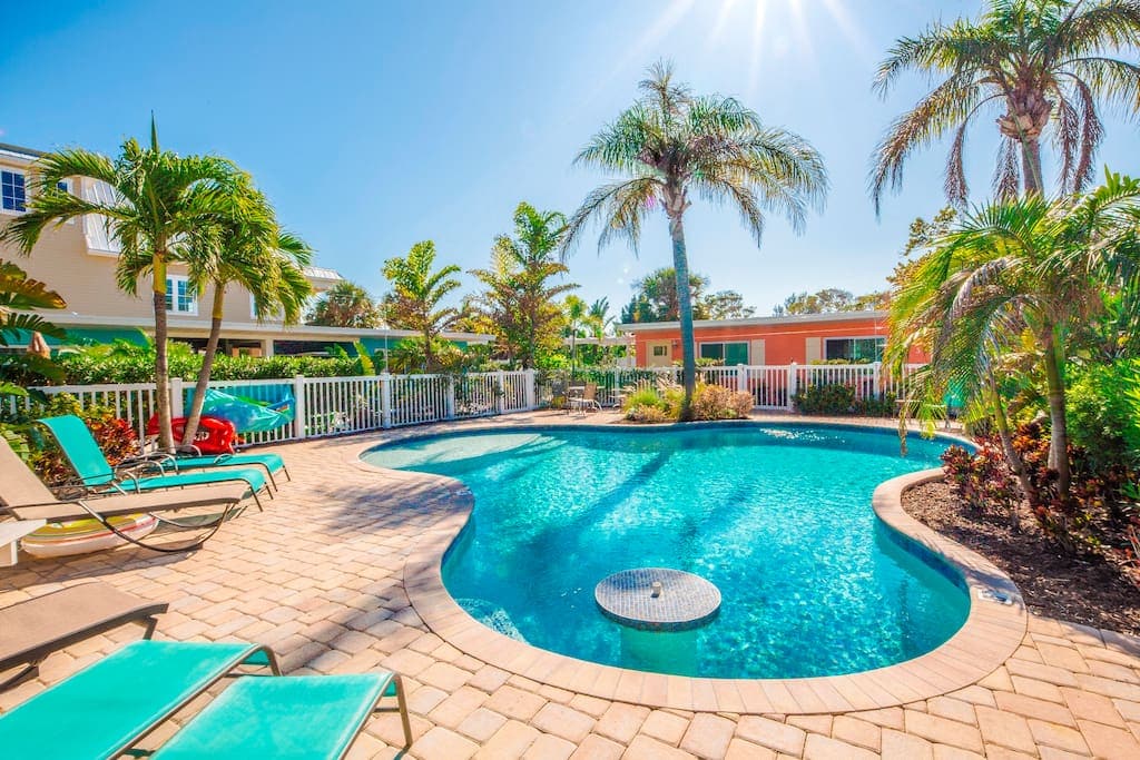 Location!!! North end of Anna Maria . Steps to the Bean Point Beach and everything you need for your perfect AMI Vacation. The duplex property features fully remodeled units thoughtfully arranged around a free style heated pool, creating a private, resort-style atmosphere. Guests may reserve 1 unit or the entire property , total of 5 units avail for rent in multiple duplexes making it ideal for extended families or group gatherings seeking both togetherness and privacy. MAX Occupancy - 4 people