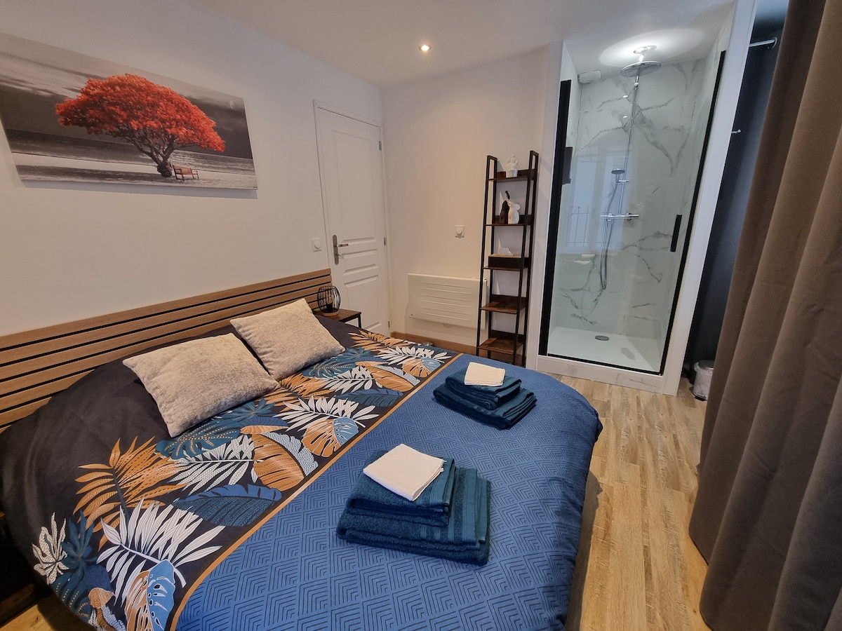 Keep it simple at this peaceful and centrally-located place, with more services at your disposal: luggage storage, laundry, and electric bike rental. Its cozy space has been optimized to accommodate you comfortably. Located on the ramparts of the lower town, it is a 5-minute walk from the city center and the train station. You will find all the comforts you need: equipped kitchen, Wi-Fi, Bbox, a shower room with toilet. Upstairs, the bedroom is a real cocoon. Parking