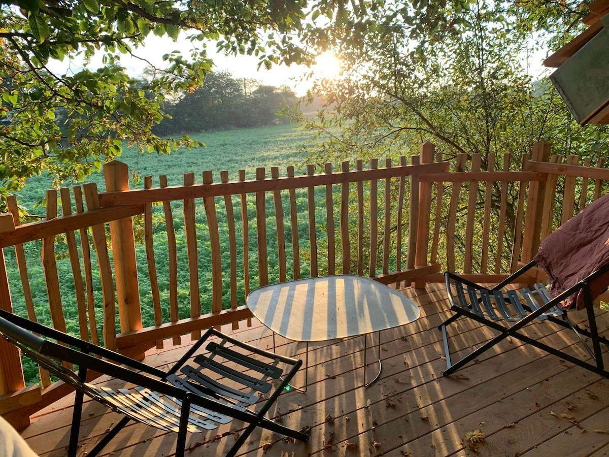 A small nest perched in the trees, out of sight, 4 meters from the ground… in an eco-friendly approach. The swallow's nest is a small sphere equipped with a round bed 2.1 m in diameter, which can comfortably accommodate two adults. The hidden terrace in the treetops opens to the east, perfect for an outdoor breakfast. On the ground, you have access to a private area to make your stay more comfortable: bathroom, toilet, mini kitchen