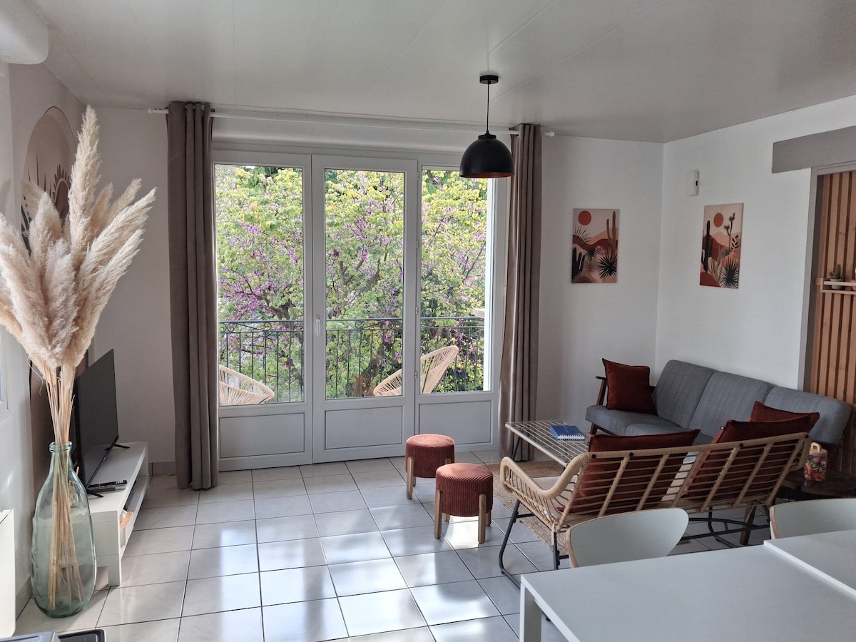 In a quiet alley, close to the center, on the Vélodyssée circuit, we offer three comfortable bedrooms, in a 100 m2 apartment, freshly renovated. 3 min walk: market, bakeries, creperie and bus stop to Nantes and Noirmoutier. By car: mythical Passage du Gois and oyster ports of Bourgneuf Bay 6 min (13 min by bike), Fromentine beach and Noirmoutier bridge 15 min (35 min by bike/track). Great for a getaway with family or friends.