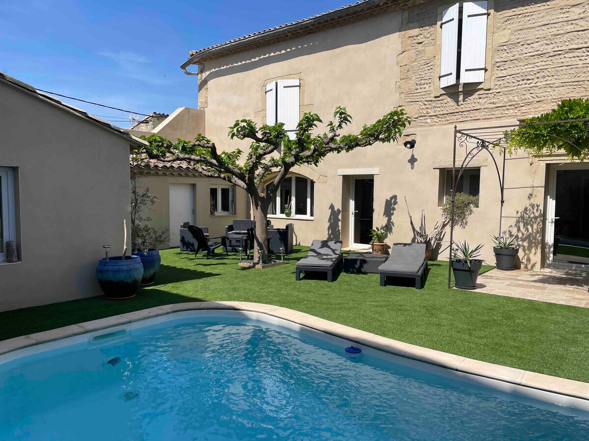 At Papé REMY and Mamé JUJU's. In the Camargue, authentic family house (from the 18th century, 1746) completely renovated in 2017, 4-star rated, air-conditioned, combining the charm of stone and all the comforts. The courtyard is a haven of peace. Located in the heart of the village, in the historic center, very quiet area. Vauvert is a village of traditions, where many festivities take place in the region throughout the year. Free public parking near the house