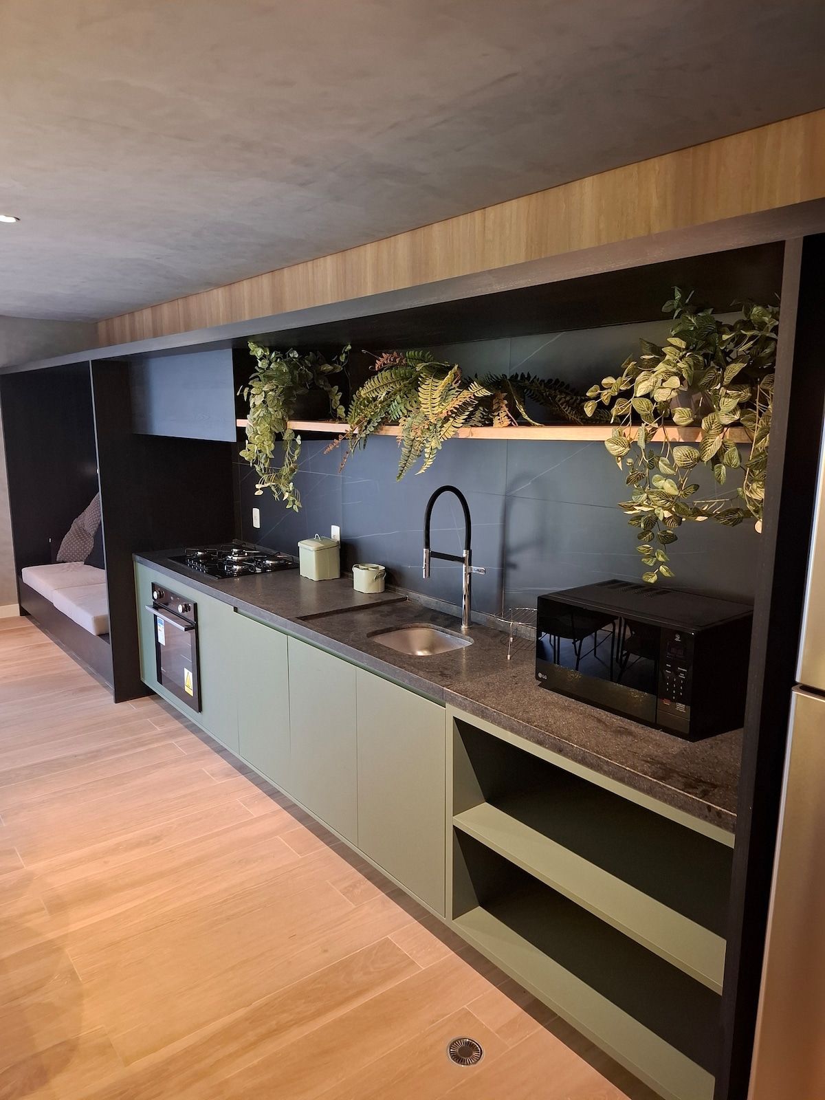 Open the door and step inside… "Uh uh, que beleza" in the heart of the concrete jungle. The greenery and cozy atmosphere reveal the Brazilian rhythm of this retreat. Every corner invites you to feel, dream, and be inspired by the sounds of Brazilian classics on vinyl. This is your place, for work or to experience São Paulo, because there is love in SP. The house pulses with life, with the freshness of plants, the poetry of books, and the gentle rhythm of bossa that accompanies every moment.