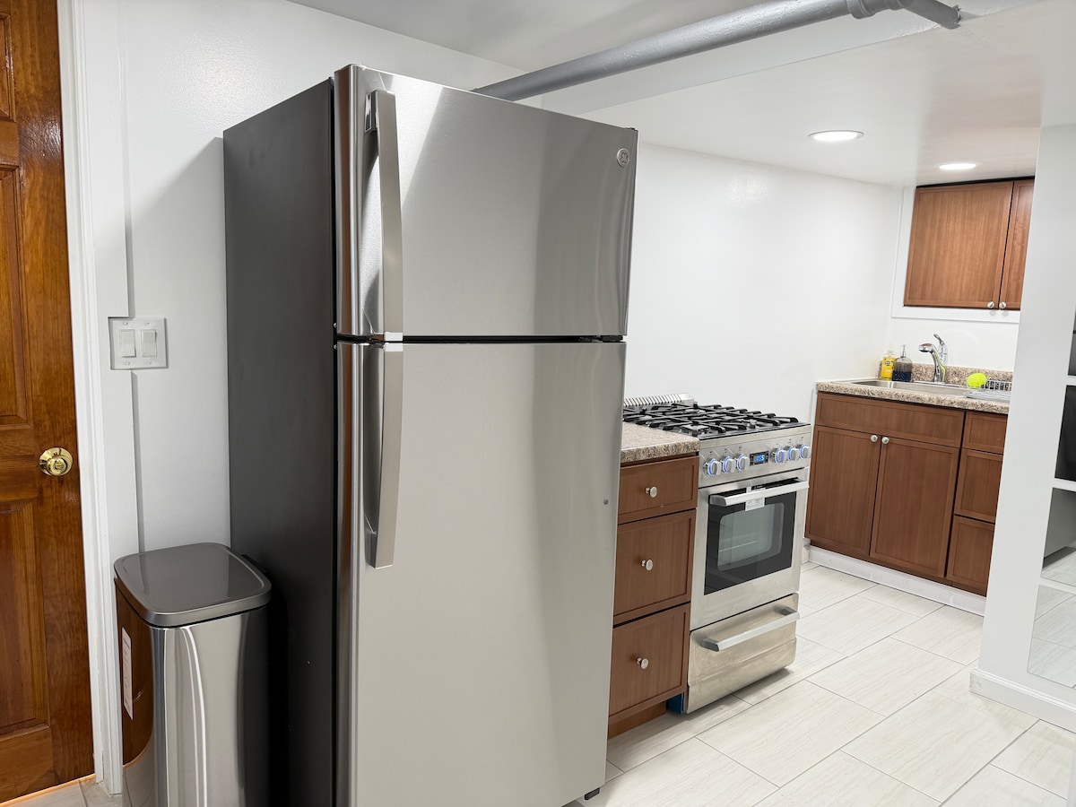Come and be sure to enjoy a cozy and comfy stay at our newly renovated studio apartment. kitchen is well decked out. The space boasts a multipurpose area that can be used for dinning, recreation and work. Your own full bathroom that is clean to the touch. 50 inches smart tv with internet access. Your own private parking and entrance. Self-checking-in. Apartment is cool or warm to perfection by the latest in split unit ac technology. apt. is about 7 minutes' walk to the 2 train to Manhattan.