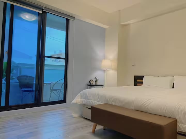 White and elegant, self check-in, spacious and bright, pure white bathtub, air conditioning, 65-inch TV, kitchenette, washer and dryer, free parking