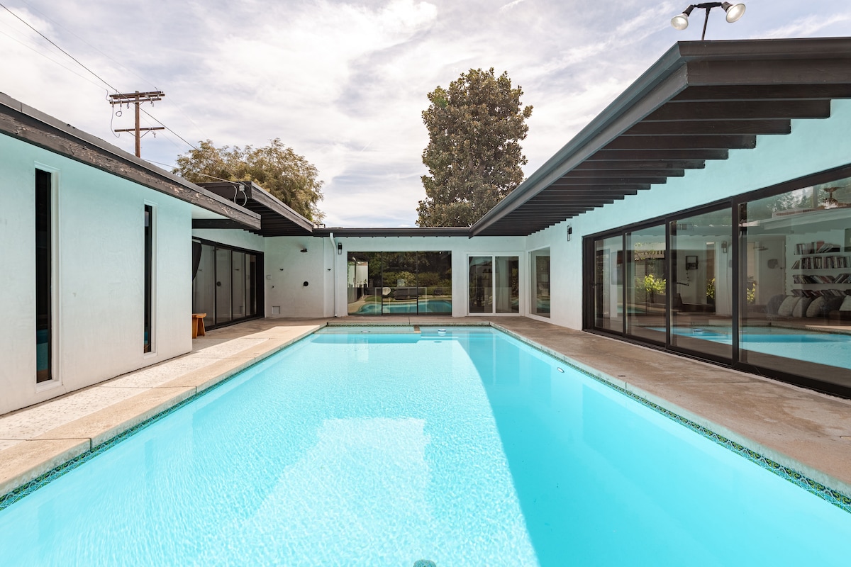Incredible 5 bedroom 3 bath Mediterranean/Spanish style home featuring a private lush entertainers back yard with beautiful pool, spa, outdoor dining, bar, barbecue, and a mini gym/yoga room. The interior has a fully stocked chefs kitchen, 2 gas fireplaces, multiple large TVs, family game area, stylish and comfortable bedrooms with large closets, and a jacuzzi tub in the primary bath. This home is located in Valley Village, central to many tourist hot spots.