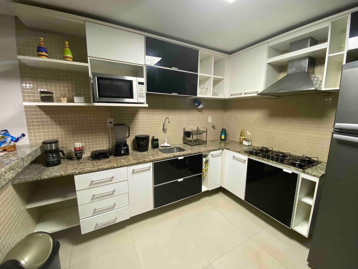 Cozy apartment, complete and modern accommodation, fully furnished, finely finished, high-end bedding of pure cotton 600 threads, white towels of combed threads, porcelain dishes and crystal glasses, noble cutlery, stainless steel pots, duplex refrigerator, cook-top, exhaust fan, electric ovens and microwave, sandwich maker, blender, popcorn maker, 2 TVs, Home Theater, 12 bottles of wine cellar, 600gb internet, cable TV, washing machine, electric shower.