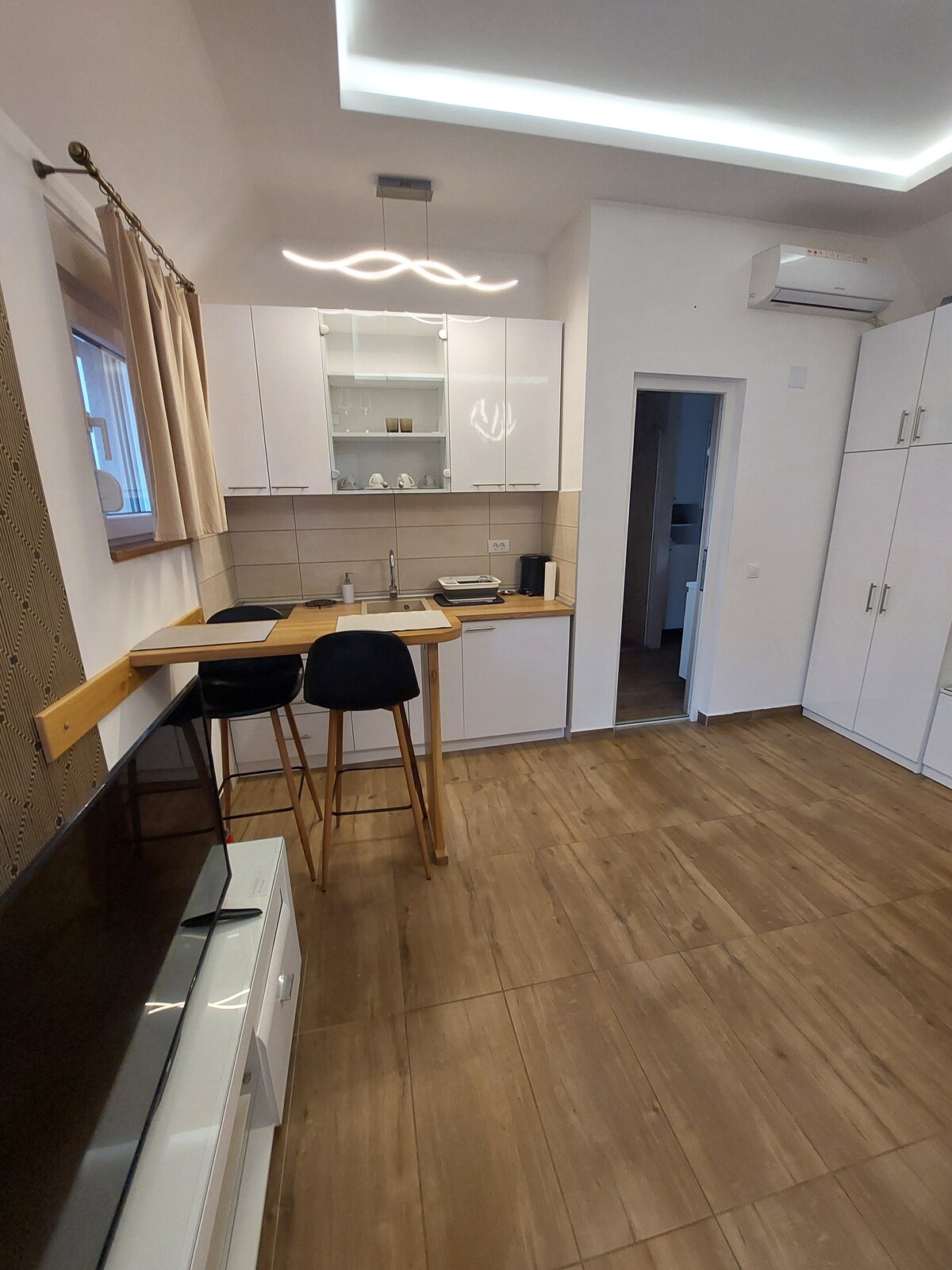 Lovely little cottage with a separate entrance in nature. With a small patio with lovely views of the forest. It consists of two rooms with a total of 36m2. A kitchen with a living room and a separate bedroom. Kupatilo knows your kabinom, sink and toilet. 200m to the bus stop from which you are in the center of town for 25 minutes. 250m to the first supermarket. Next to the amount of setaliste and trim trails.