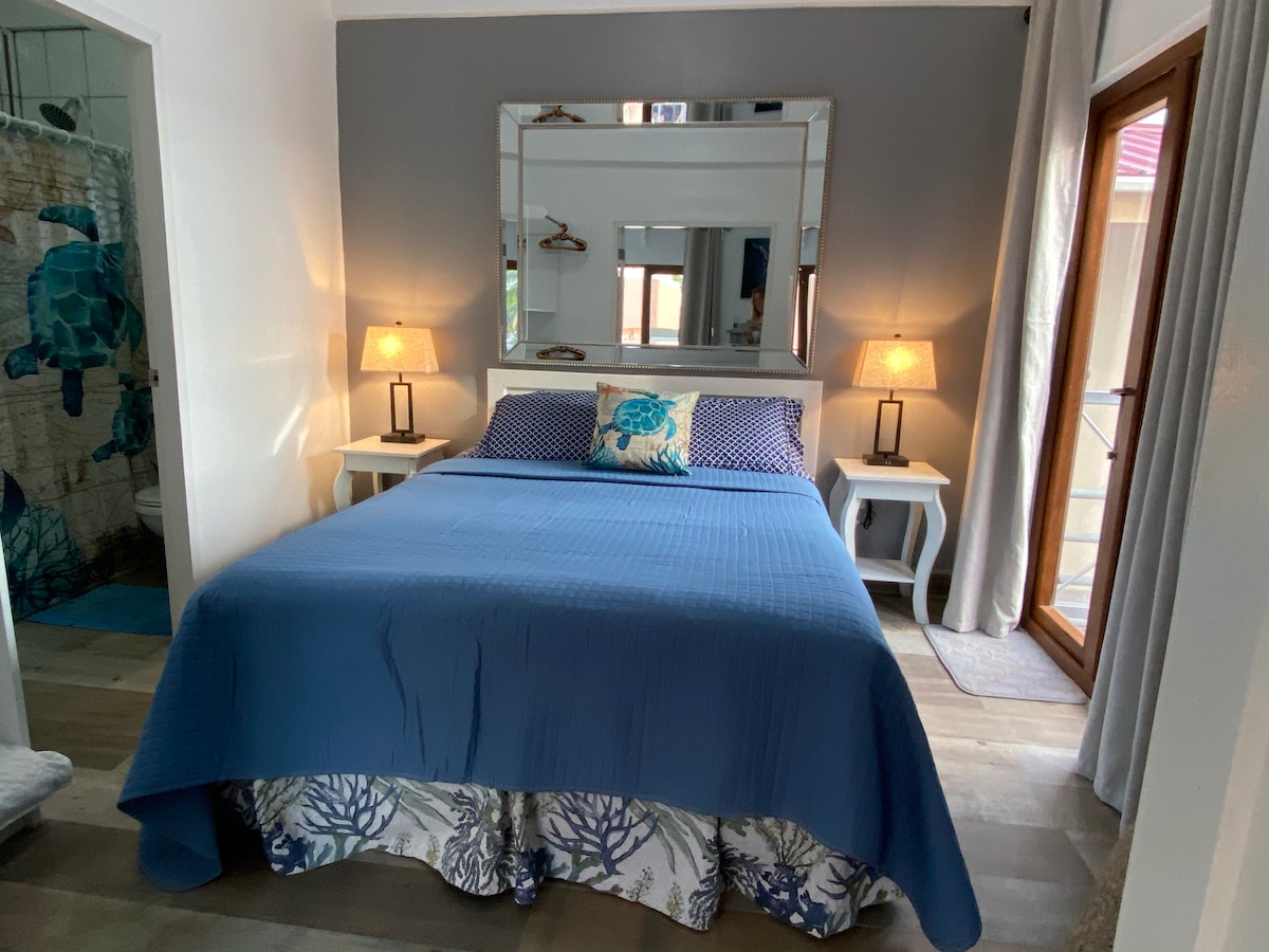 This is a second floor unit with a great view of the Caribbean sea, we are located two minutes walk from the famous split and close by restaurants, super markets, tour operators and five minutes walk from the water taxi. This apartment have everything you need to feel like in your home: a full furnished kitchen, hot and cold shower, A/C and a fast wifi.