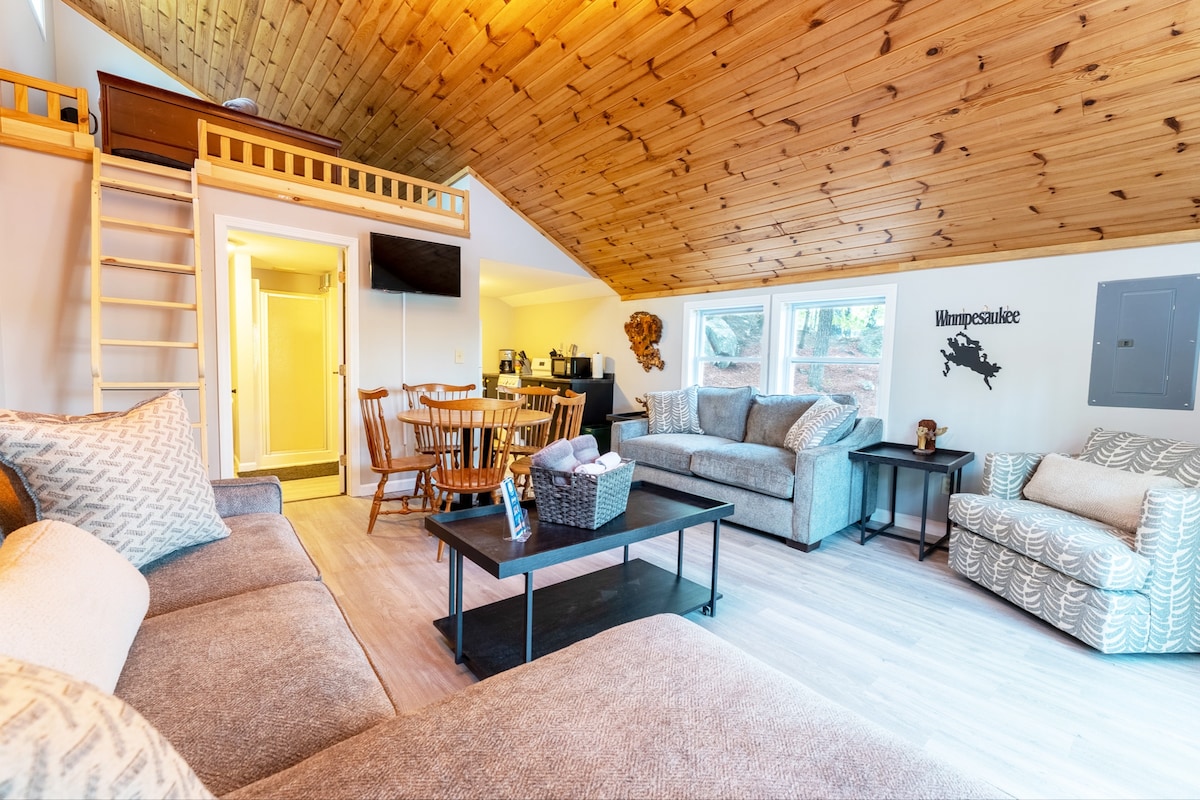 Newly Renovated Cabin with Lakeviews • Beautifully renovated Cabin sleeps 3 Alton Bay • Pet Friendly • Complimentary Wi-Fi • Smart TV and JBL bluetooth speaker • Direct Lake Access (across the street) • Kitchenette equipped with essential amenities perfect for simple meals and snacks. • Complimentary Coffee, Parking, Kayaks and Bicycles • Less than 10 minute walk to dining and local attractions