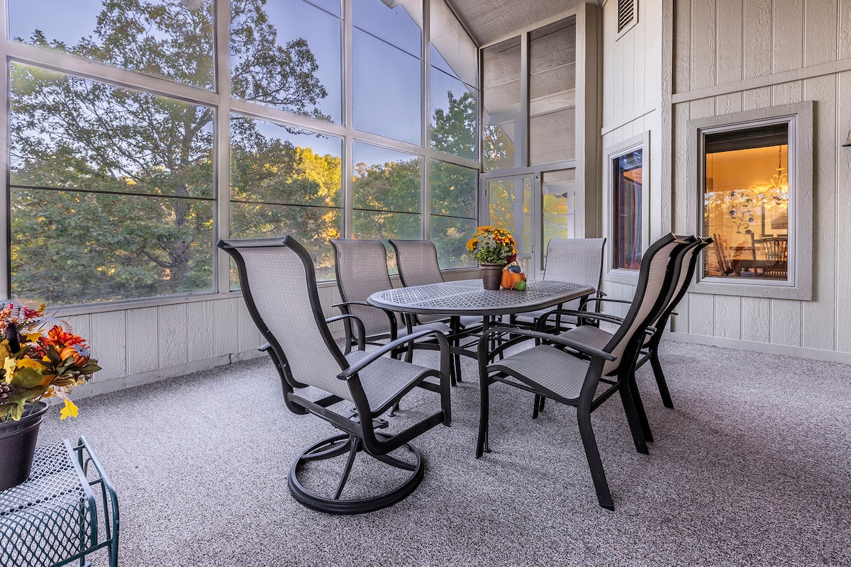 SERENITY COVE is a Beautiful Lake front home, on a cove off the main lake. This is a private lake. Located on a family friendly quiet cul-de-sac. This comfy, remodeled place has new fireplace and wood stove, decks, and a newly completed screened in porch. Quiet area where you can hear the birds sing and relax while you over look the lake. Close to swimming pool, exercise facility, golfing. 20 minutes from downtown Bentonville, Crystal Bridges and bike trails in Bella Vista and Bentonville area.