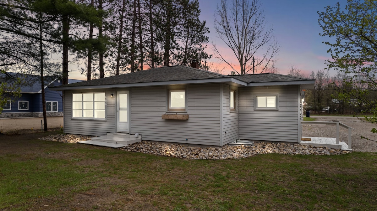 Enjoy the coziness of a bygone era while staying in this 1940s quaint, storybook log cabin. The Hawks Nest has been lovingly restored to its original glory while having all the modern-day amenities woven through its clean 380 sq. ft. space. Retreat to the spacious covered porch to relax and view the acre-and-half property leading down to 100ft of 6Mile Lake frontage. Star gaze while relaxing in the comfortable, Amish-built gilding chairs around the spacious, paver fire pit area .