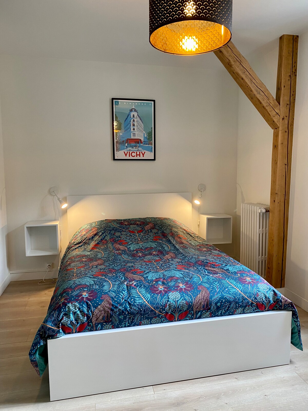 46 m² apartment completely refurbished, ideal for 4 people, located in a beautiful 1930s hotel on the 1st floor without elevator, quiet (courtyard view). It is conveniently located: in front of Parc Napoléon III Walking distance: - 1 min from Vichy thermal baths - 5 min from Vichy city center - 2 min to a small supermarket - 2 min to an underground parking lot - 1 min from the banks of the Allier (bike path, restaurants, etc...) Free street parking