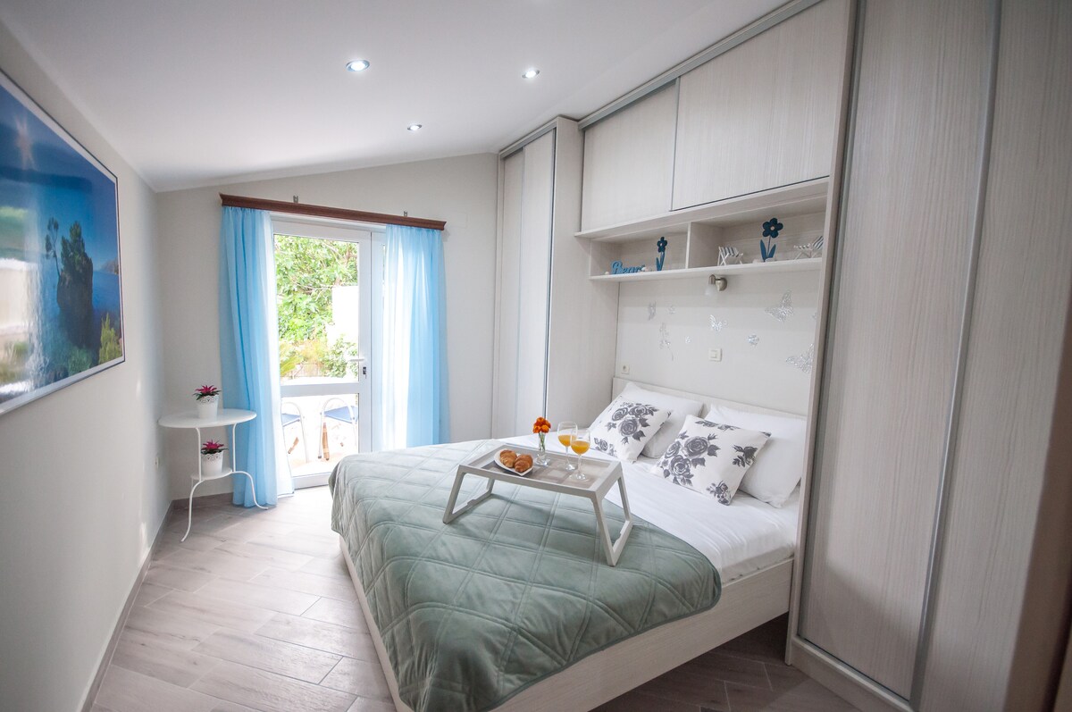 Our newly built apartment can accommodate up to 4 people (2+2).It has separate entrance and free parking space (car&boat). It features one bedroom, bathroom, living room with sofa bed, kitchen and balcony with sea view.Free Internet access and free parking are also available