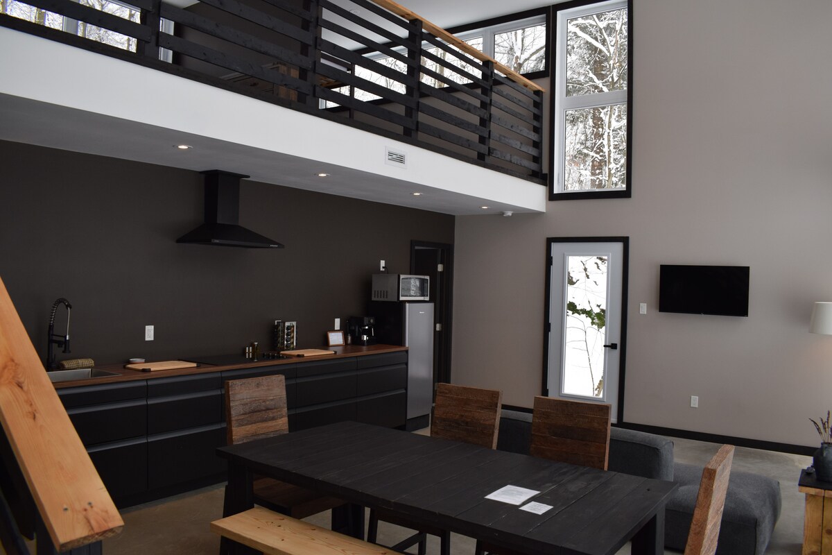 (CITQ #301525 expires 09-30-2026) Discover the warm and welcoming atmosphere of Chalet Inukchic. Soft and unique decor, abundant windows, peaceful forest views… a destination of choice for nature and tranquility lovers. Our hiking/mountain biking trails are accessible directly from the cottage. Our beautiful terrace, perched high up, is the perfect place for your summer evenings with friends or your sweet mornings in tranquility.