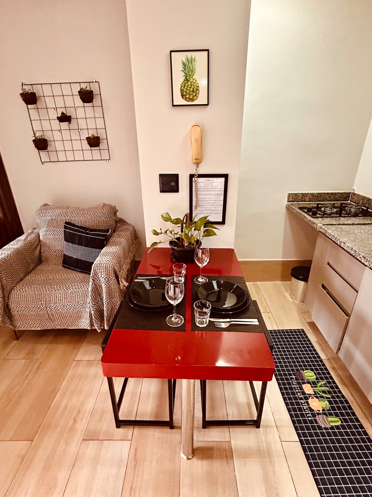 Loft located in the central area of BH, overlooking the bus station, on the 24th floor. The loft has a full kitchen, bathroom, living room and bedroom with a tatami-style double bed. The loft has custom-made and modern furniture, as well as a super comfortable sofa bed and 55” TV. There are curtains in the living room and bedroom. Tower fan and humidifier. 24-hour concierge, good quality fitness center, modern building. There is no garage, but there are parking lots nearby. Neighbor to several BH postcard attractions.