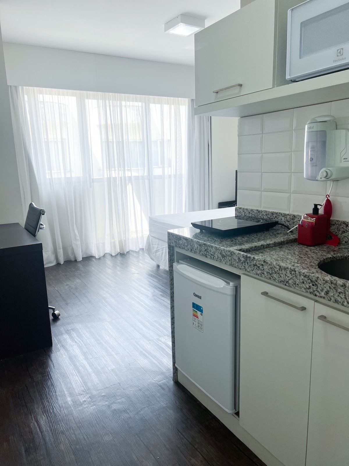 Modern apartment, 32m2, located in the best part of Sion. Practical kitchen with minibar, cooktop, TV (open channels/Netflix), air-conditioning, hairdryer, electric kettle and internet. South Zone, next to JK Square and Bandeirantes Avenue, in front of a Supermarket. Rooftop of the building with fitness center, sauna, swimming pool, living area and community kitchen (water, ice maker). On-demand cleaning available. Secure building with 24-hour concierge. *There is no garage included.