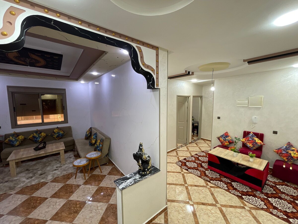 ✨ Welcome to Our Peaceful Villa in Beni Mellal ✨ Enjoy a spacious and spotless private room in our elegant villa in Beni Mellal. Relax with air conditioning, TV, free parking, and a sunny balcony overlooking our peaceful garden. Feel at home with full kitchen access or savor our authentic Moroccan meals. Warm hospitality, calm vibes, and local charm await — the perfect mix of comfort and culture in the heart of Morocco. 🌿✨