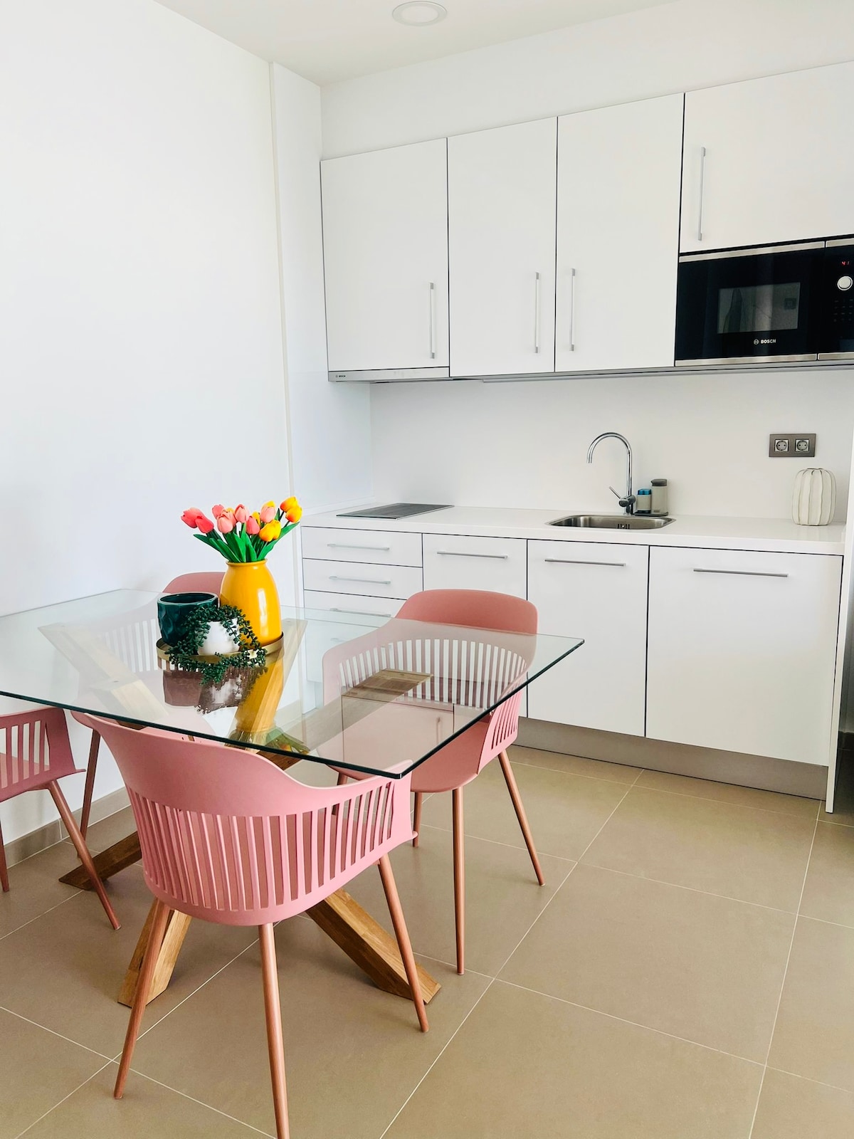 Welcome home! Your new 80 m² luxury apartment is located in an exclusive, quiet area of Benidorm, just 30 meters from the fantastic sandy, longest beach in Benidorm - Poniente beach. The location affords you a wonderful view of the sea, and there is a 200 sqm terrace with a pool. The tasteful and exclusive interior fittings and furnishings invite you to relax and enjoy every moment, completely undisturbed. There is a modern smart television in every room. And of course you have your own garage.