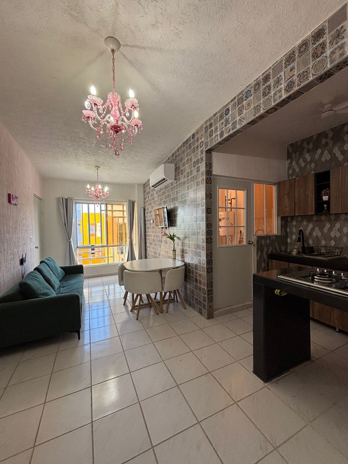 Enjoy Cancún from this comfortable and functional apartment, perfect for relaxing or working remotely. • Air conditioning in all areas • WiFi and Netflix included • Condominium swimming pool • Strategic location next to Plazas Outlet • 10-minute walk to Walmart and supermarkets • 15 minutes by public transport to the Hotel Zone and beaches • Condominium with elevator and easy access 🚍 Public transport nearby • 🛒 Shops within walking distance