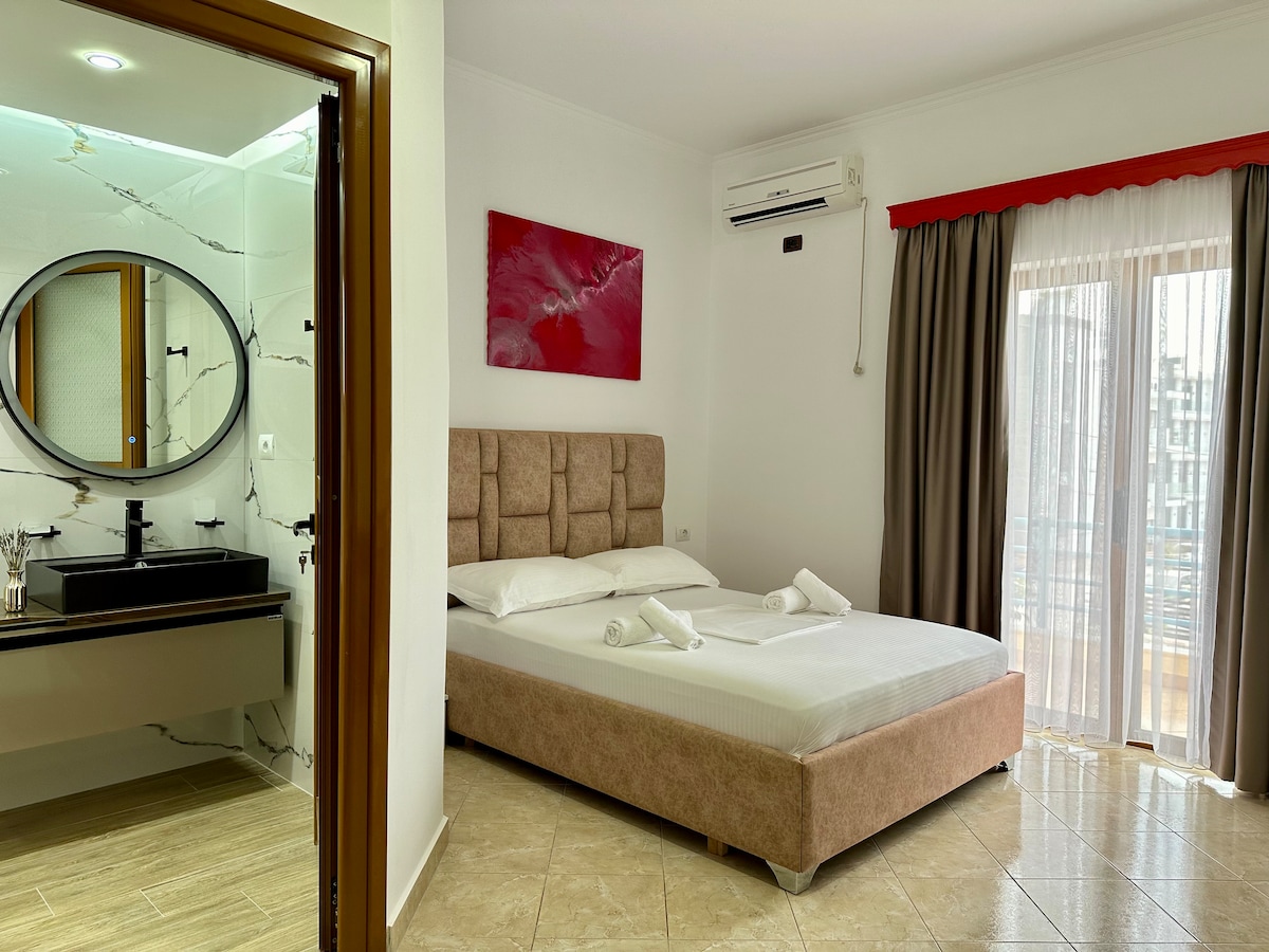 Elegant Serenity in the Heart of Ksamil Welcome to your sanctuary in Ksamil, where modern sophistication meets tranquil comfort. This meticulously designed suite offers a blend of luxury and practicality, featuring sleek contemporary furnishings complemented by warm, inviting tones. Our clients can use the hotel pool for free. The pool is seasonal, open from 01.06 - 30.09. We also have free parking.