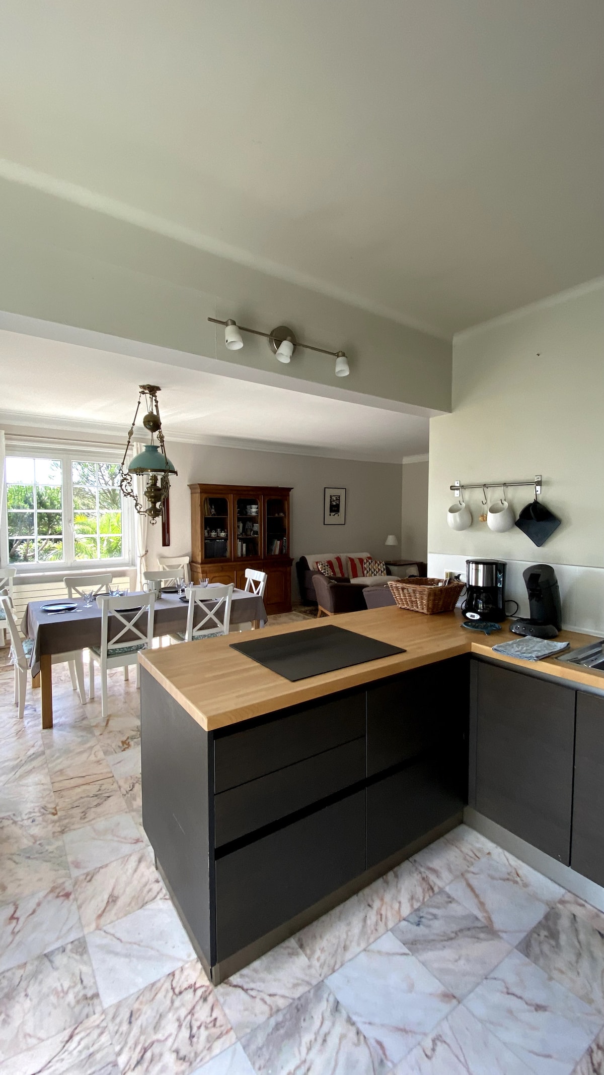 Découvrez la Villa Babalélé, une demeure d’exception située à Fouesnant, à deux pas des plages. Caractéristiques de la Villa : • Capacité 12 personnes, réparties dans 5 chambres spacieuses (quatre lits 180, 1 lit 160 et deux lits de 90), dont 2 suites parentales pour un confort optimal. • Cuisine entièrement équipée avec frigo américain. • Piscine Privative : Une piscine de 8 m x 4 m chauffée du 10 avril à fin septembre. Borne de recharge voiture disponible en supplément.
