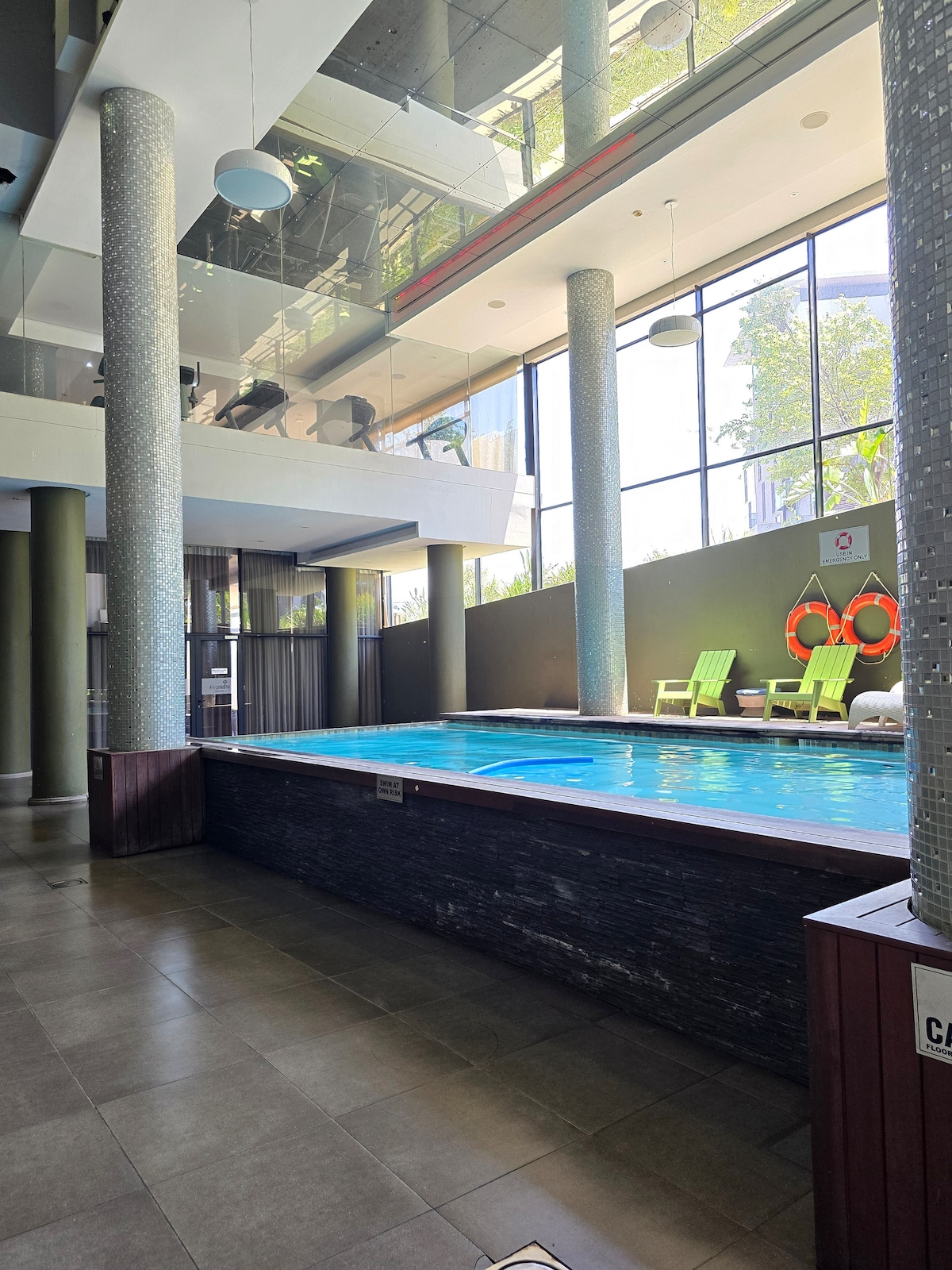 Enjoy a stylish stay just a 5-minute walk from the Umhlanga Promenade and Bronze Beach. This modern apartment is ideally situated opposite the vibrant Oceans Mall and close to Umhlanga Village’s restaurants and cafés. Relax on your private balcony with a gas braai or take a dip in the communal rooftop pool. The apartment offers a well-equipped, and secure space with 24-hour access control—perfect for couples or business travellers. Please note: There is potential for nearby construction noise.