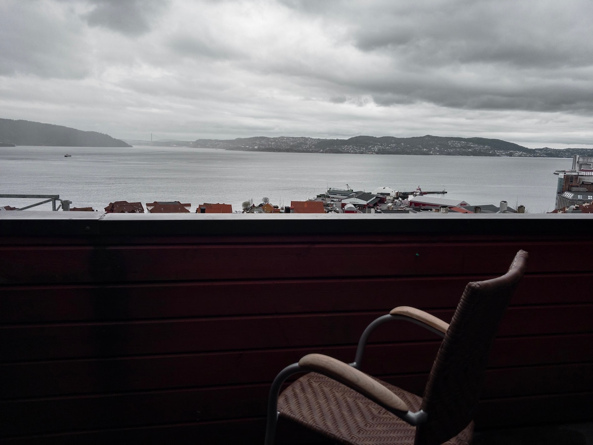 Welcome to our airy loft! With amazing view of the city and several of the mountains surrounding it you can really feel at home during your stay in Bergen. The studio apartment is perfect for a couple or one person travelling alone. The house is a historical building, but the loft was renovated in 2015. This spring we have built a separate entrance and private balcony for the loft, so it is even more enjoyable.