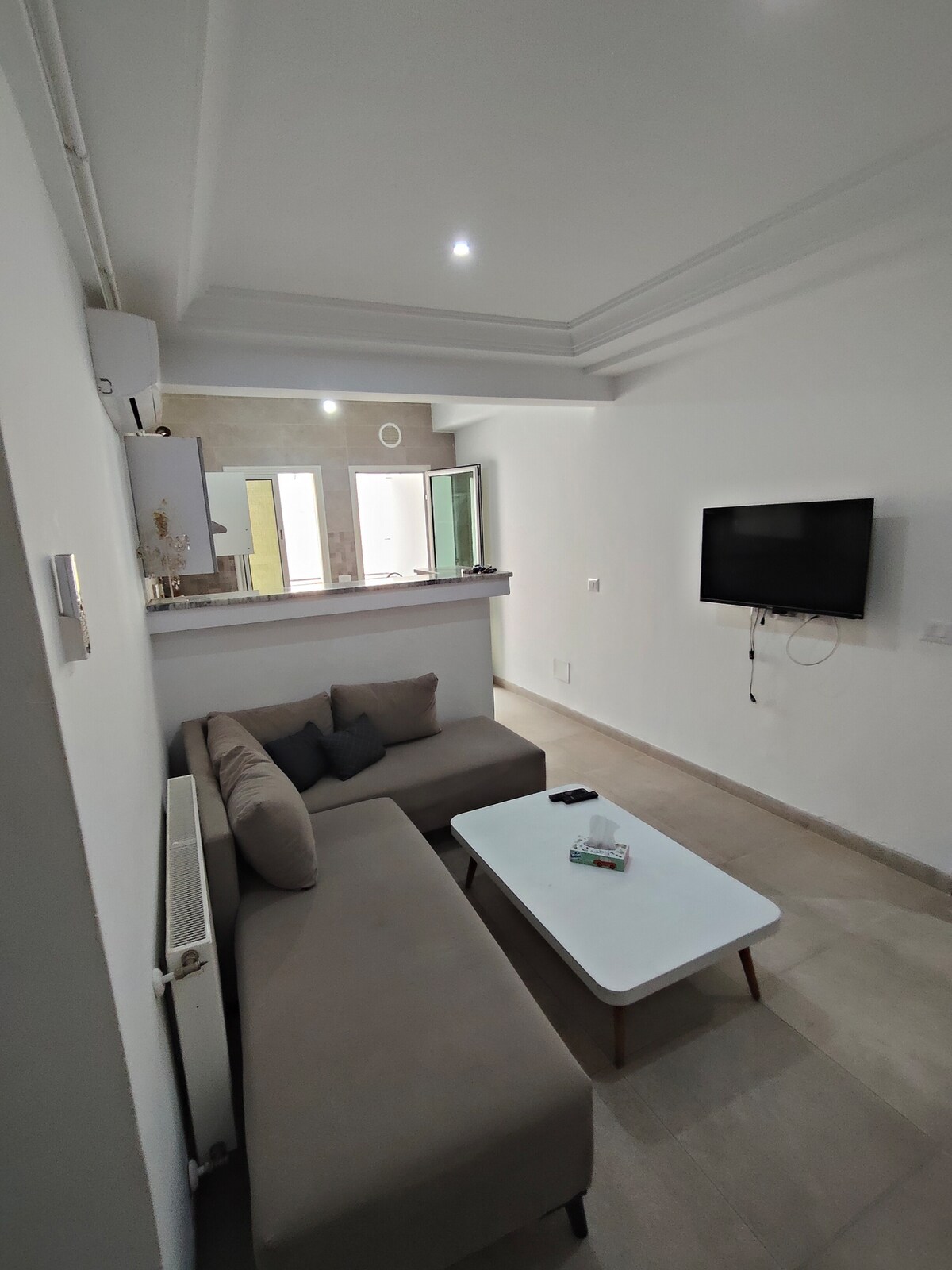 A very nice apartment with independent access, renovated with passion, located in a quiet "FARAH" residence on the main avenue Cité WAHAAT in front of Magasin MG, one of the best known cities of Tunis and above all very safe, a lively area 24/7, close to all amenities (shops, tea rooms, gyms, restaurants...) 10 minutes from the lake shores, Tunisia Mall, Carrefour La Marsa and Tunis Carthage Airport. It can accommodate up to 3 adults and 1 baby.