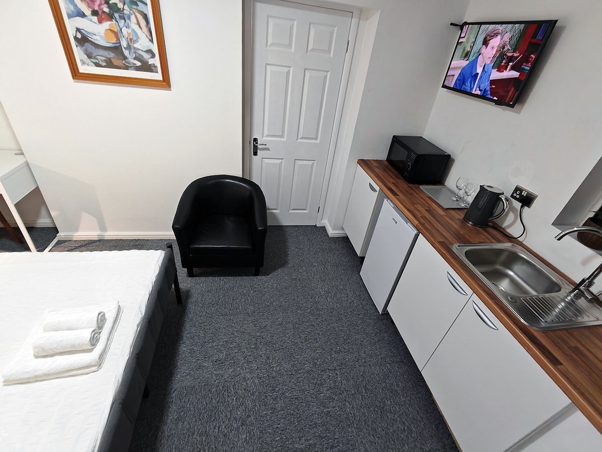 Modern studio with comfy Ikea bed, fully fitted kitchen including dishwasher, fridge/freezer, oven and hob, toaster, kettle, microwave and a Nespresso coffee machine. There is free wifi and full Sky TV with Netflix. There is also full central heating. The studio is in a beautiful rural location well away from our historic house. So visitors may come and go as they please. There is ample parking directly in front of the studio. We are 10 minutes drive from Didcot Parkway station.