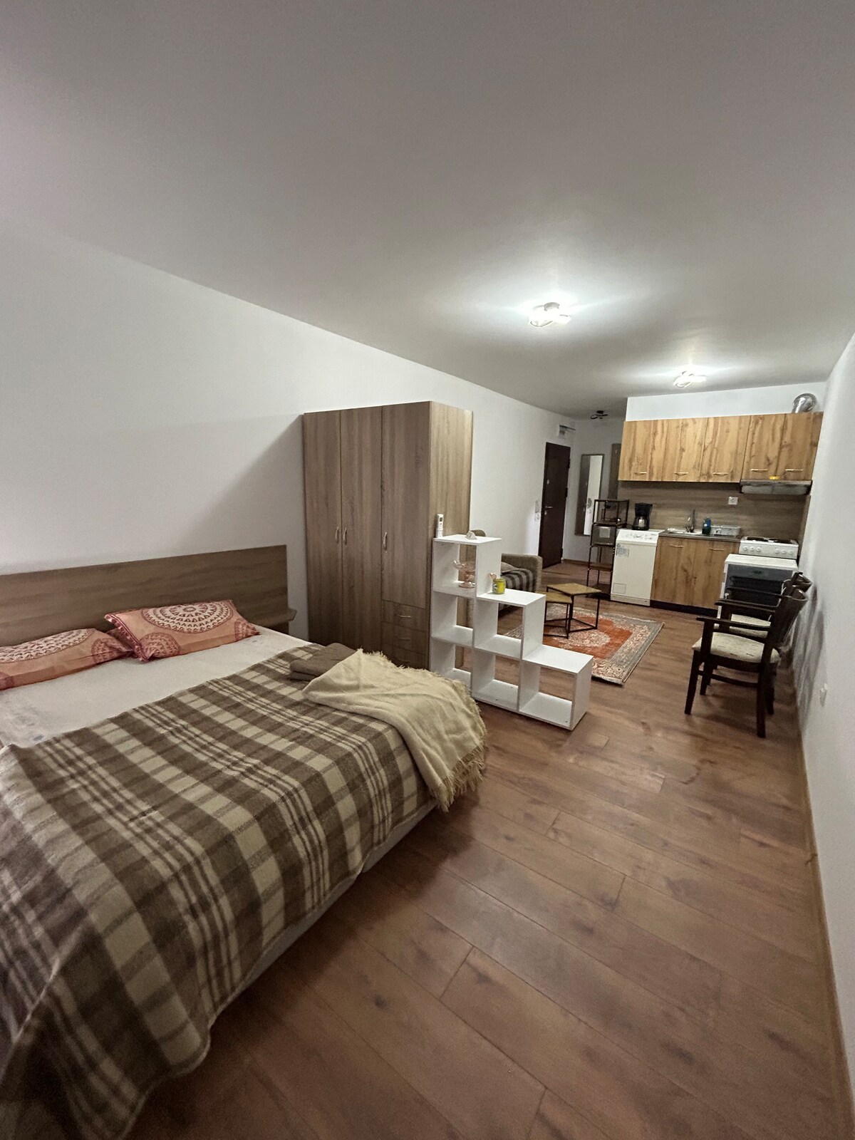 The living area is designed with your comfort in mind, offering comfy seating and a pleasant atmosphere for unwinding Our bedroom is cozy and equipped with everything you need for a peaceful night's sleep. The bathroom is modern and stylish, with all the necessary amenities Located 700m from city Center in a lively neighborhood you'll have convenient access to local attractions bustling markets and tasty dining options Immerse yourself in the charm of our city by booking your stay with us today!