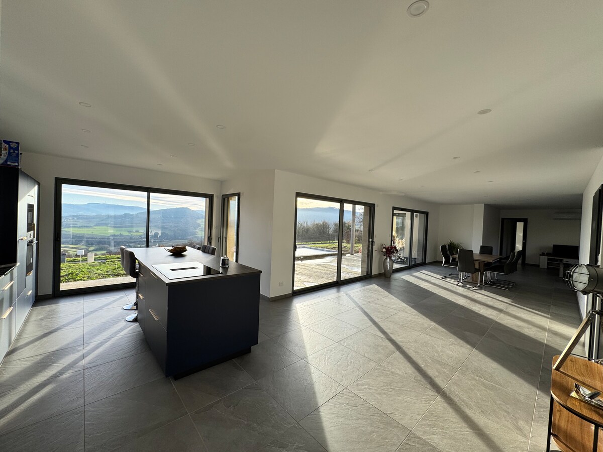 "La Suite" is an exceptional room located in Chiroubles, in the heart of the Beaujolais vineyards. Featuring a private outdoor spa, this space of approximately 70 m2 will offer you optimal comfort (XL shower, connected TV, Marshall speaker, equipped kitchenette, Wi-Fi…) with breathtaking views! On the mezzanine, you will find a king-size bed with linen sheets for your comfort.