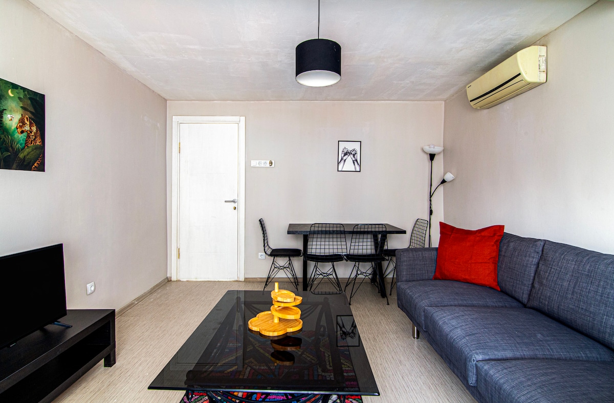 Newly decorated 1+1 spacious historical apartment in Beşiktaş Çarşı Our apartment; • Balcony • AC unit • Hot shower • A large sofa bed (adjustable for 1 person) • Dining table and coffee table for 4 • In the fully equipped kitchen, tea maker, electric stove, toaster, kettle, cupboard and plates, glasses, pots, pans and cooking utensils • Towels, sheets, extra pillows are also provided. • Hairdryer • 50 Mbps Wi-Fi • Match/sports broadcast • Equipped with NETFLIX