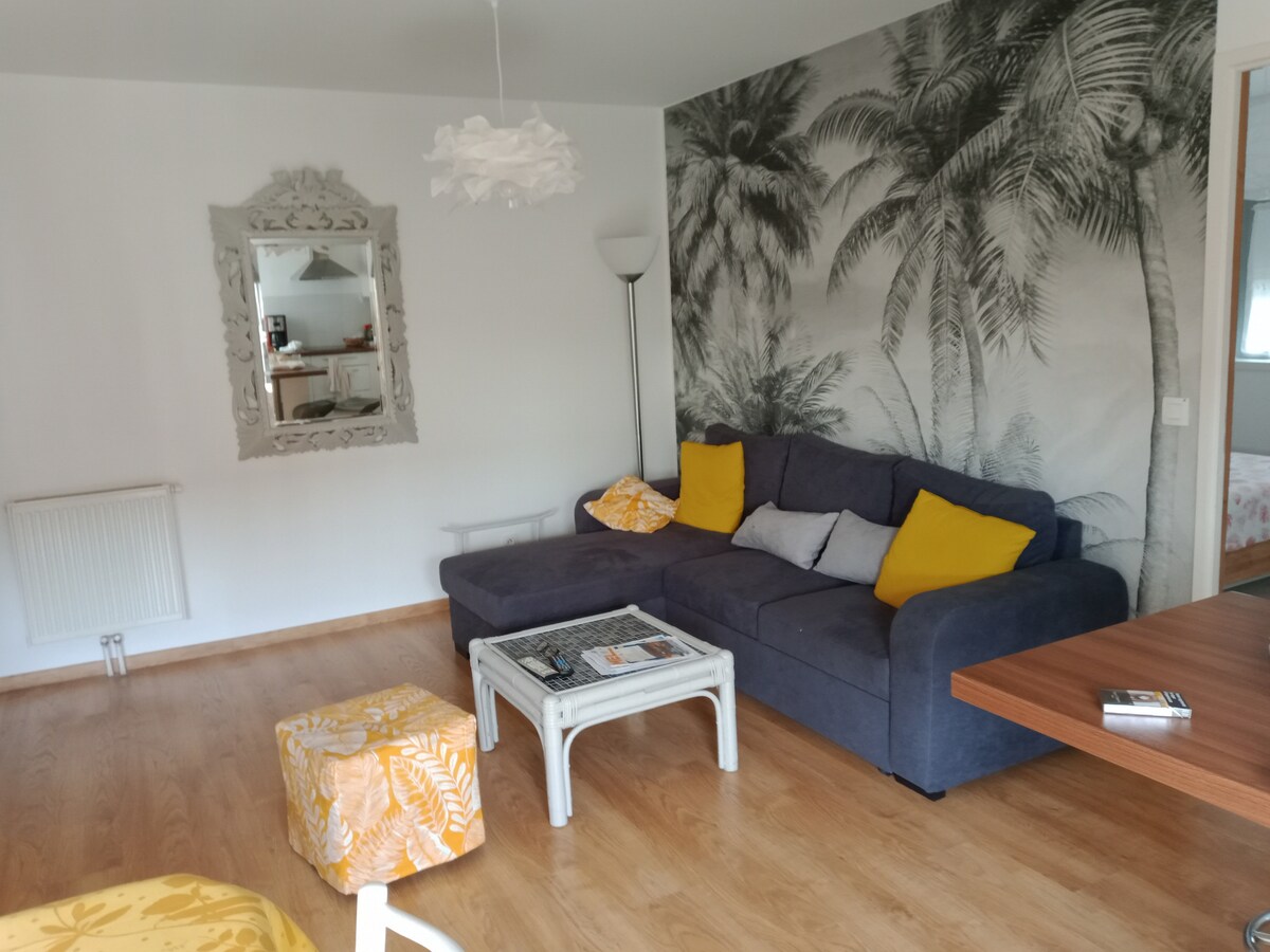 54 m2 apartment + balcony located in a secure residence, peaceful and green environment, close to all amenities, 1st floor, private parking and spaces for visitors. Composed of a spacious living room with sofa bed, a bedroom (bed for 2 people), an equipped kitchen with dishwasher, a bathroom with bathtub, separate toilet, beautiful desk for remote working, utility room with washing machine, plenty of storage and refurbished