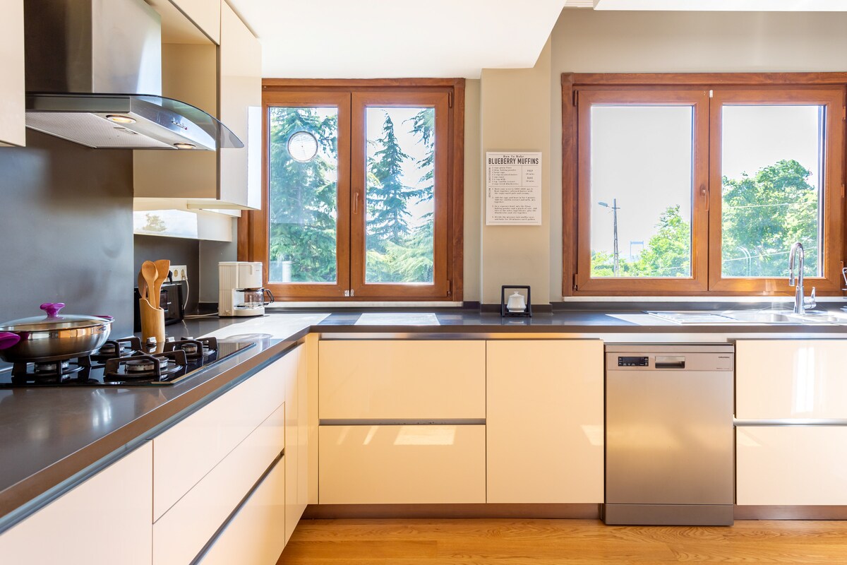 Our villa is situated right over the Bosphorus at beautiful Kavacık, only half an hour from Taksim Square, with the luxury and privacy that will make your Istanbul trip unforgettable. With 6 bedrooms, 2 living rooms and 4 bathrooms our space is perfect for your group or family. The 2 kitchens, one right by the garden is fully equipped. There is also an elevator and garage for 2 cars. For an unforgettable Istanbul experience with the luxury that you deserve book our villa without hesitation.