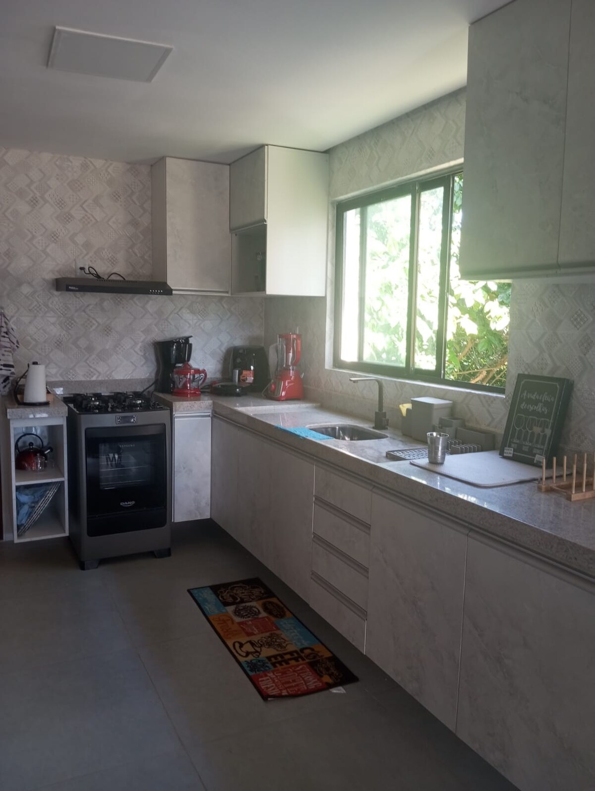 Relax with the whole family in this quiet accommodation. House in a condominium with 24-hour security, swimming pool area, multi-sport court, ballroom, children's playground, game room and fitness center. The house has 3 bedrooms, one with a suite, a living room with TV, a full kitchen with a stove, an electric oven, a microwave, a refrigerator, a cold water dispenser, and a complete set of bedding and kitchen utensils. We also have a barbecue grill and a service area with a bathroom and washing machine.