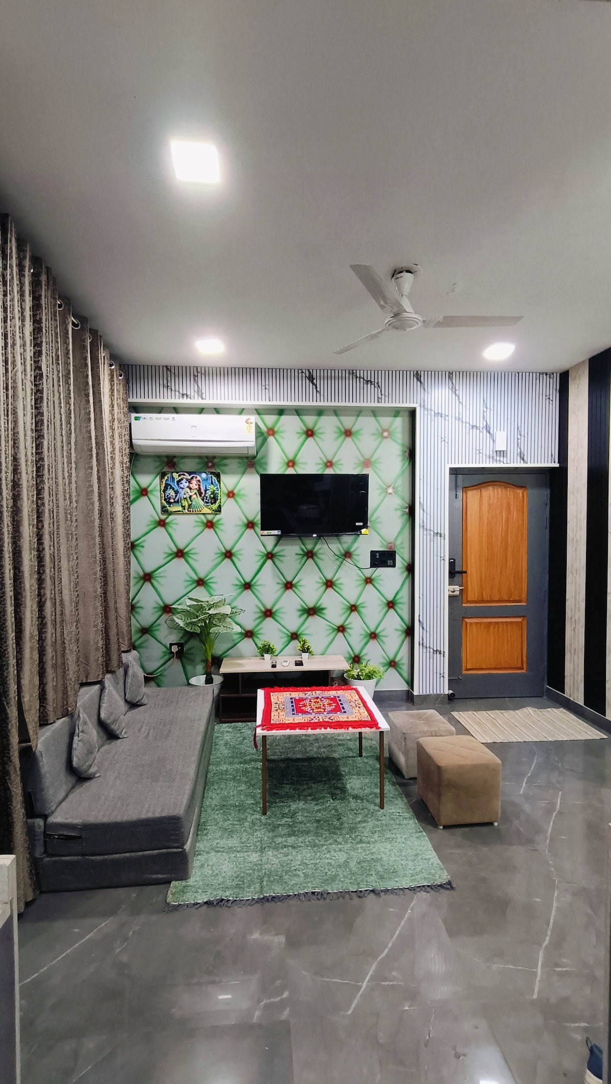 Stay in our stylish 1 BHK modern homestay featuring a subtle forest-inspired theme with warm wooden accents and cozy ambient lighting. Designed for comfort and relaxation, the space offers a peaceful escape from daily stress. Unwind in the bedroom with a Smart TV and complimentary OTT access perfect for movie nights and binge-watching your favorite shows. Ideal for couples or solo travelers looking for a serene stay with modern comforts and premium entertainment included.