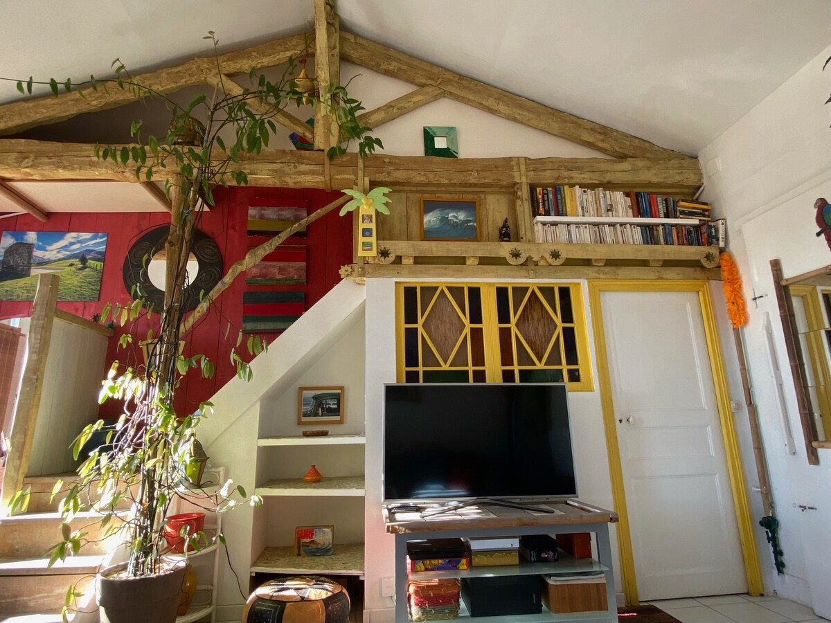 Away from the hustle and bustle of campsites, bright 18 m2 studio on the mezzanine in a detached house with independent entrance. Quiet and wooded residential area, close to bike paths and the ocean (3 km by bike). Close to equestrian center (1 km by bike). This functional accommodation is decorated in a beachfront holiday spirit. Main room 18 m2: 1 double bed, single bed, equipped kitchenette. Swing and access to the garden with dining area. Bed linen provided. Dog present.