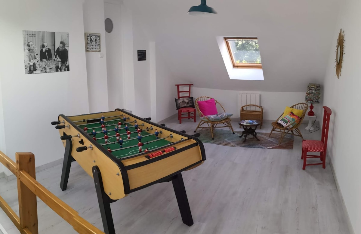 In a green setting and in a very quiet residence, I offer a spacious and comfortable room with an en-suite bathroom and private toilet. You can also find a mezzanine upstairs to rest on. the house is 5 minutes from the beaches, close to the pier for the Glénan archipelago or the GR34 for hiking enthusiasts and 3 km from Beg Meil, a charming little seaside resort. possibility of breakfast (extra charge)