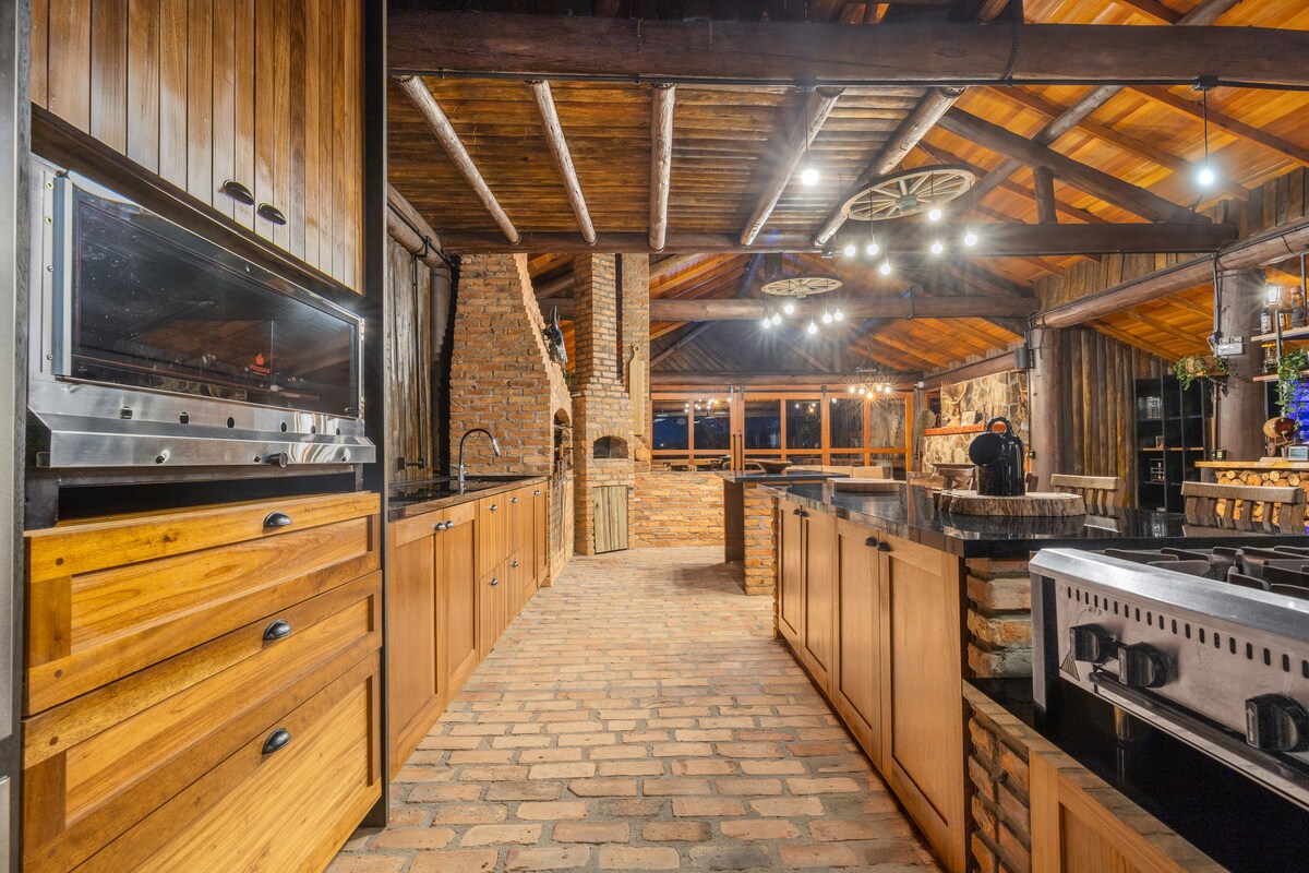 Relax with the whole family at this unique and peaceful place, where you can wake up integrated with nature, listening to the birds. A complete and cozy house, with an indoor fireplace, 4 bedrooms, 3 of which are suites facing the lake, beach tennis court, swimming pool, fire pit, games room with foosball, ping pong, and air hockey. Jacuzzi, pool table integrated into the dining and living room. Barbecue, stove and wood-burning oven... in short, an incredible place, with a whole house connected to nature and you!!