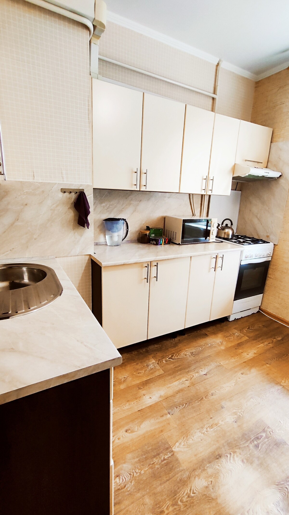 Cozy and freshly renovated studio apartment, which is not shared with the house owners. Located near the city center. It has everything you need for a comfortable stay and living. What's nearby? - Supermarket (round-the-clock market) and pharmacy - 3 minutes on foot - Branch of PrivatBank - 7 minutes - Central City Bazaar - 10 minutes - City center - 20 minutes - Regional Children's Hospital - 10 minutes Free parking in front of the house.
