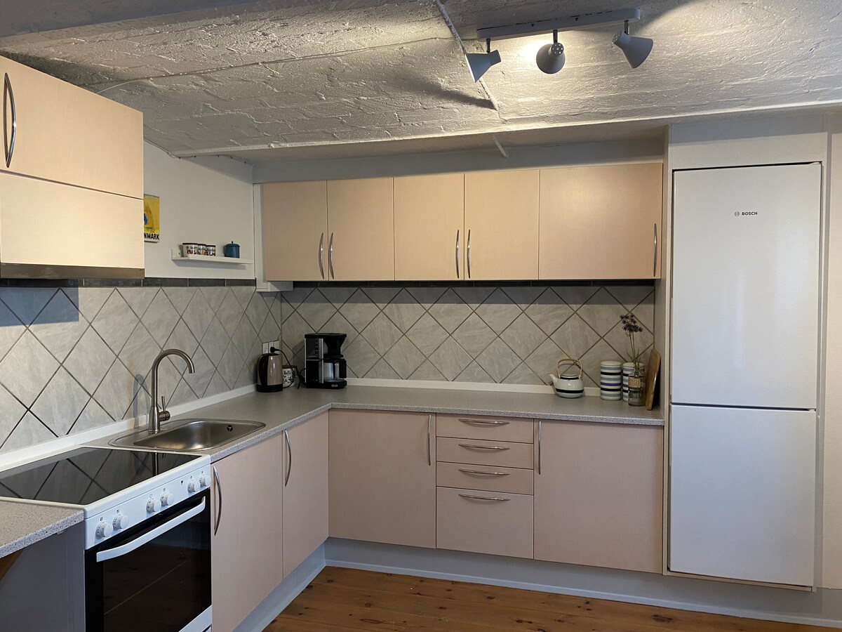 Your family will be close to everything when you live in this centrally located home. This cozy villa is set back from the road with a large private garden with great opportunities for relaxation and play in the garden. The house is about 130 m2 and has 2 entrances, a large kitchen, 4 good spacious bedrooms, 1 bathroom, living room, kitchen and utility room. All beds are 90*200 cm and can be assembled as a double bed or separated into 2 separate beds in each room. The house has a large kitchen with plenty of space