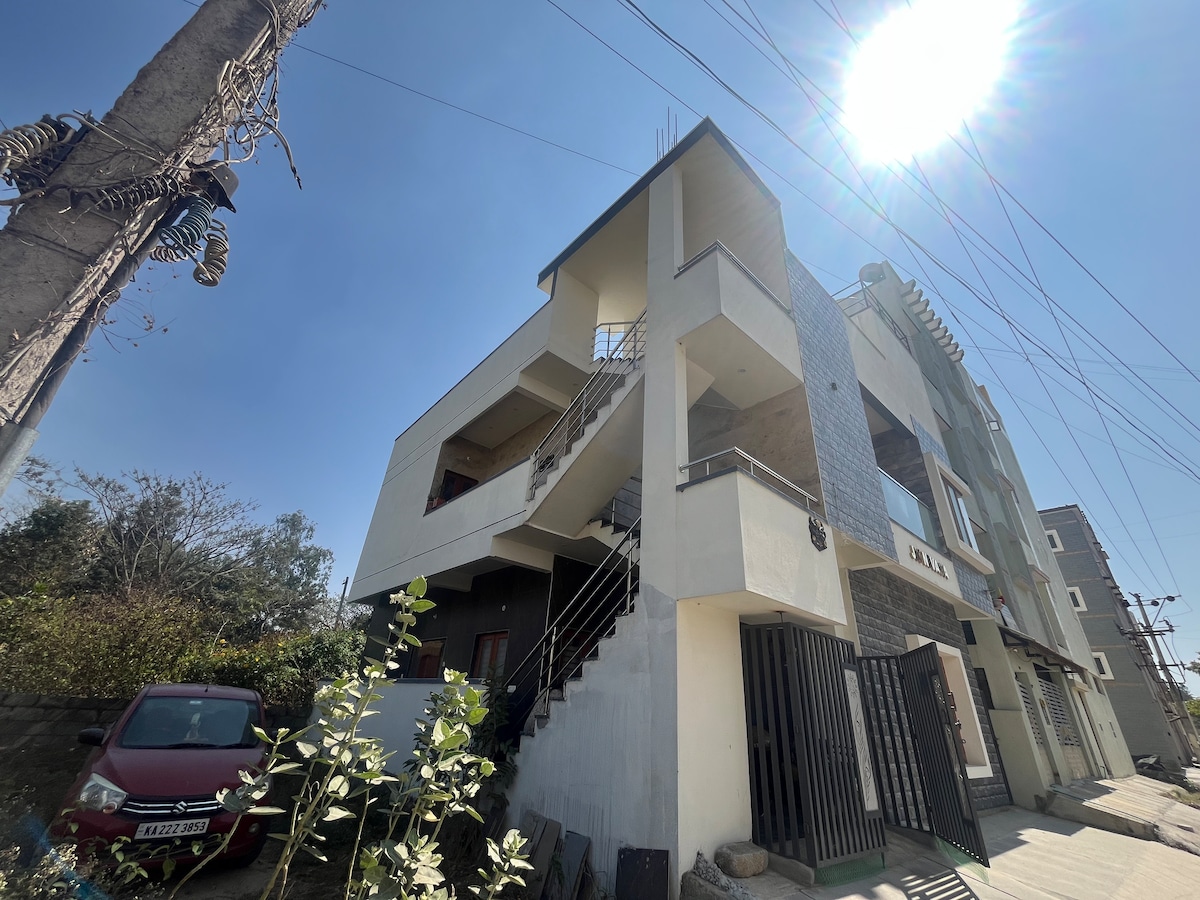 2BHK apartment located near Bannerghatta National Park, surrounded by greenery and fresh air. Ideal for families, couples, and nature lovers. Wake up to birdsong, enjoy your morning coffee on the private balcony, and relax in a peaceful residential neighborhood after a day of exploring Bangalore. ✨ Highlights of the Home: 🛏️ 2 comfortable bedrooms with cozy bedding 🌿 Private balcony – perfect for tea, work, or sunset views 📶 High-speed Wi-Fi