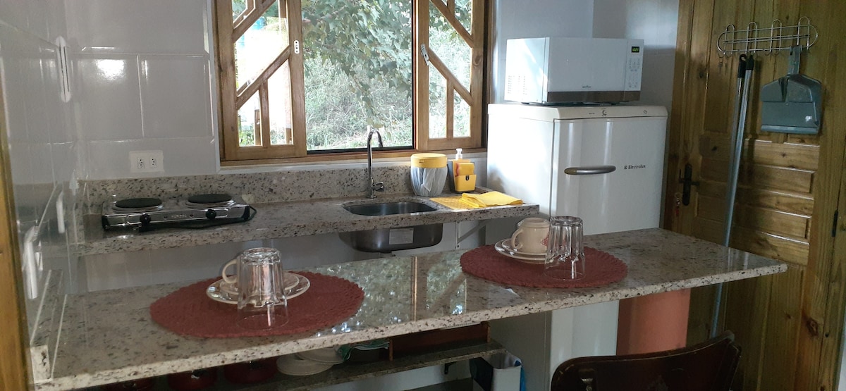 Here you will find the perfect balance between nature and comfort! We are located just 1 hour from São Paulo | 20 minutes from Mogi Shopping | 40 minutes from São José dos Campos. Ideal place for those looking for coziness and tranquility! To the sound of the waterfall that passes by the side of the cabin and with a privileged view of the forest, it is common to see families of marmosets in search of bananas, and toucans perched in the trees!